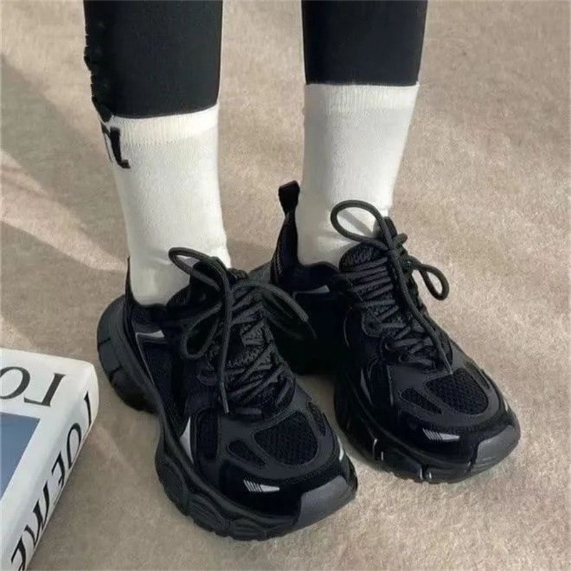 【3日出荷】ブラックレディース ソフトソールライトウェイト 通気性メッシュ ランニングシューズ スニーカー