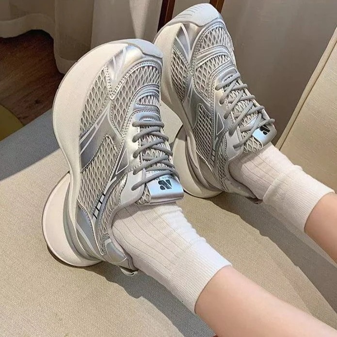 【3日出荷】レディース薄手通気性メッシュ 厚底カジュアルランニングシューズ スニーカー