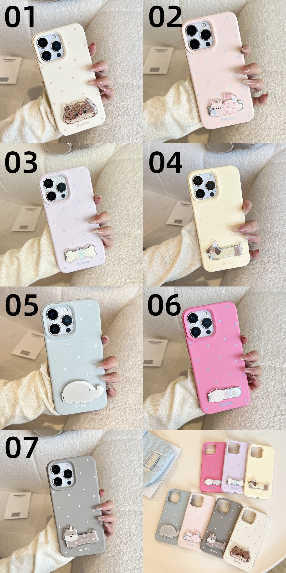 【2点購入で追加2 0 0円OFF】iPhone17/17Pro/17Pro Max対応 7色展開 スタンド付きギフト ケース ピュアカラー ドット 動物 ペット とても可愛い ペア 親友 16/15