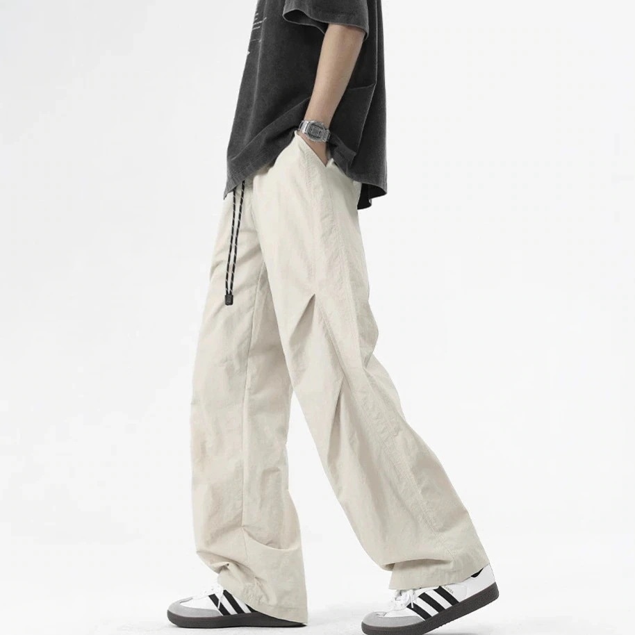 アメリカンスタイルのパラシュートパンツ(男性用) 2025年春夏新作 トレンドブランド ワークパンツ ストレートシルエット ゆったりフィット 万能ロングパンツ