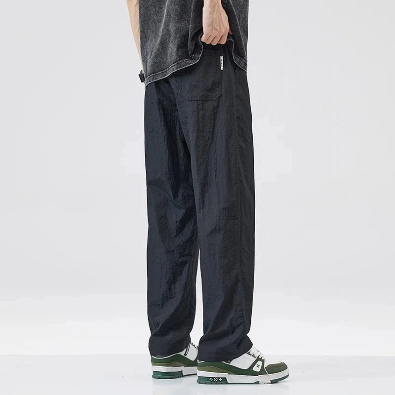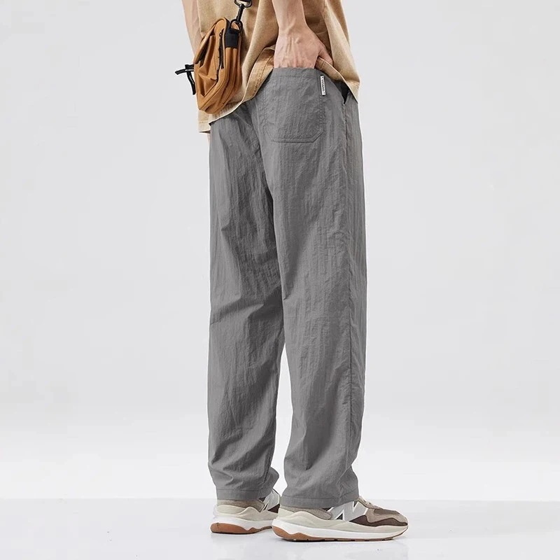 涼感アイスシルクパンツ男性用 夏用薄手速乾ゆったりストレートワークパンツ 夏用スポーツカジュアル長ズボン
