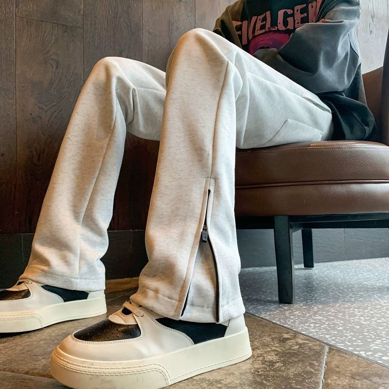 ブラックメンズパンツ秋冬アメリカン裾ファスナーパンツ トレンドブランドスリムフィットスポーツストレートパンツロングパンツ