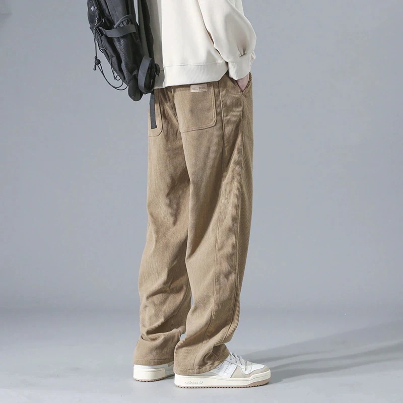 ラベル付きコーデュロイパンツ 男性用春秋秋冬スポーツカジュアルパンツ アメリカンスタイル ゆったりサイズ ストレートワイドパンツ ロングパンツ