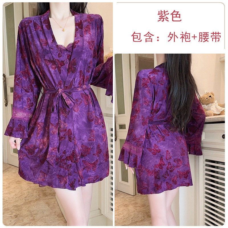 瑰若甜美レース蝶柄胸パッド付きポルカドット網紗接ぎ付けタンクトップパジャマ外がわセットQJ5286