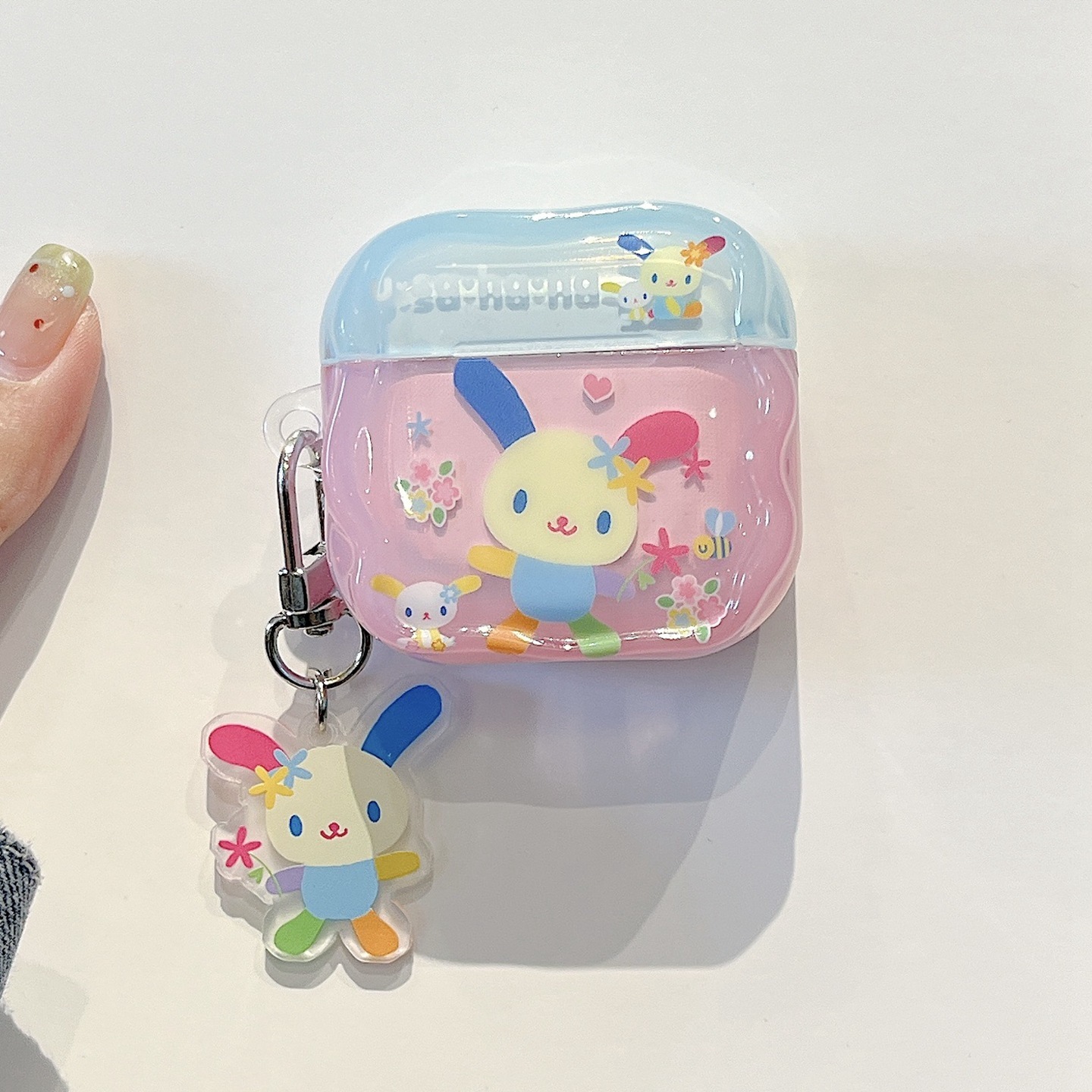 可愛らしいカラフルな花とウサギのイヤホンケースアップルイヤホン用保護カバーに適合airpods4ケースpro2/3用柔らかい材質