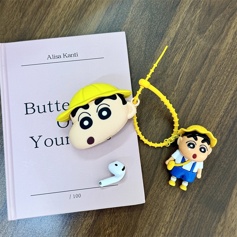 黄帽しんちゃん対応AirPods4保護ケース アップルBluetoothワイヤレス1/2/3世代Pro2イヤホンケース 可愛い