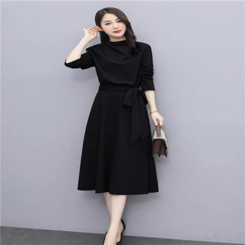 2025年春夏の新しい高級ワンピース 女性らしいシルエットでウエストを強調しスリムに見せる オードリー・ヘップバーン風の優しい雰囲気のロング丈・長袖ベーススカート