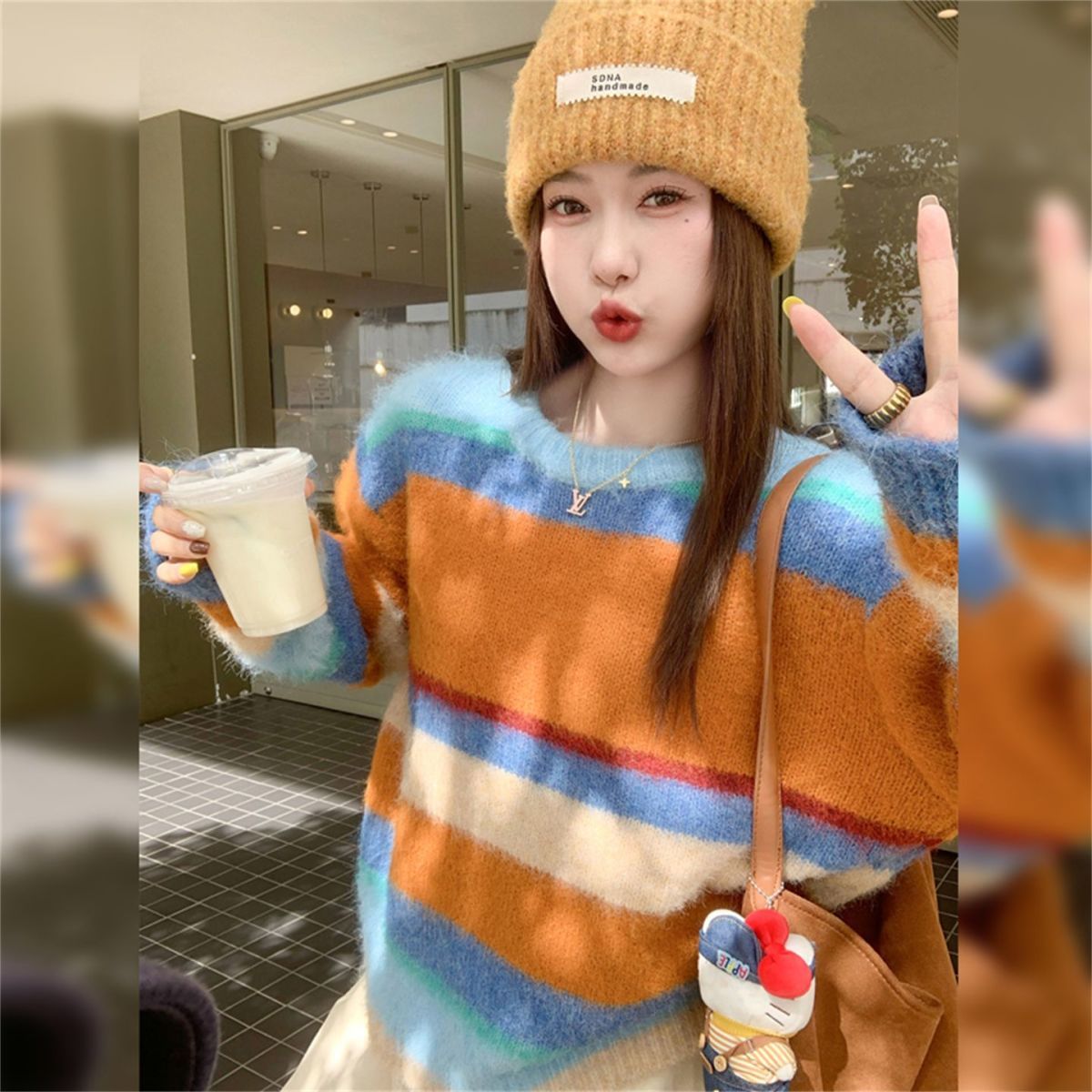 怠惰 虹 しま模様 レディース 新しい セーター ぶつかって色 カジュアル 秋冬 ゆったり ニット