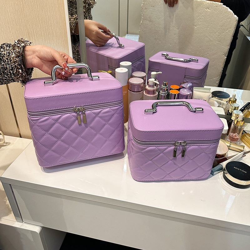【急速出荷】 大容量 収納ボックス 鏡付き 化粧ポーチ 2026 新作 格子 刺繍糸 化粧ポーチ 携帯 手持ち 高級 手持ち 化粧ポーチ 無地 メイクポーチ 化粧品収納 化粧ボックス
