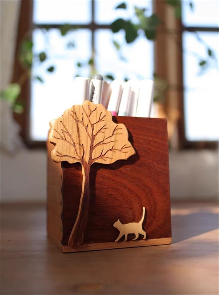 INSスタイル 使いやすい角型ウッドトレイ デスク周りをスッキリ整理 文房具とコスメを一つに集約する設計