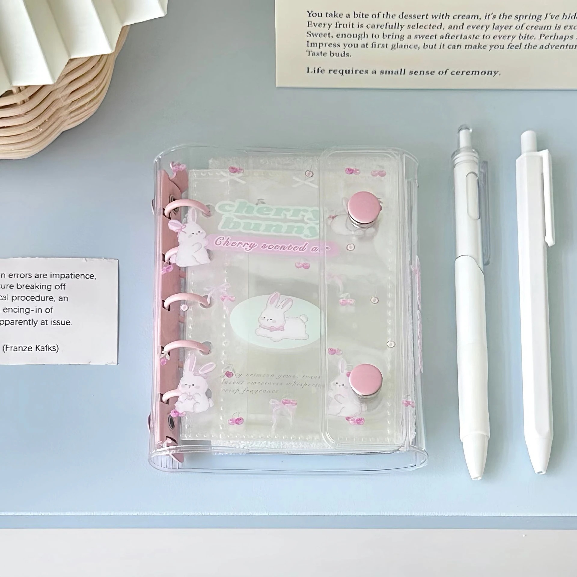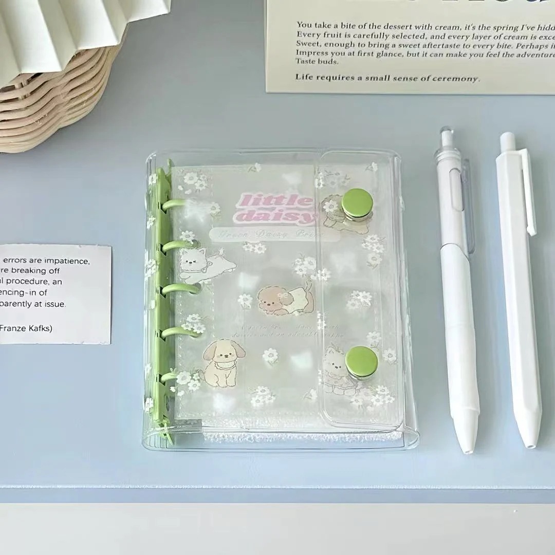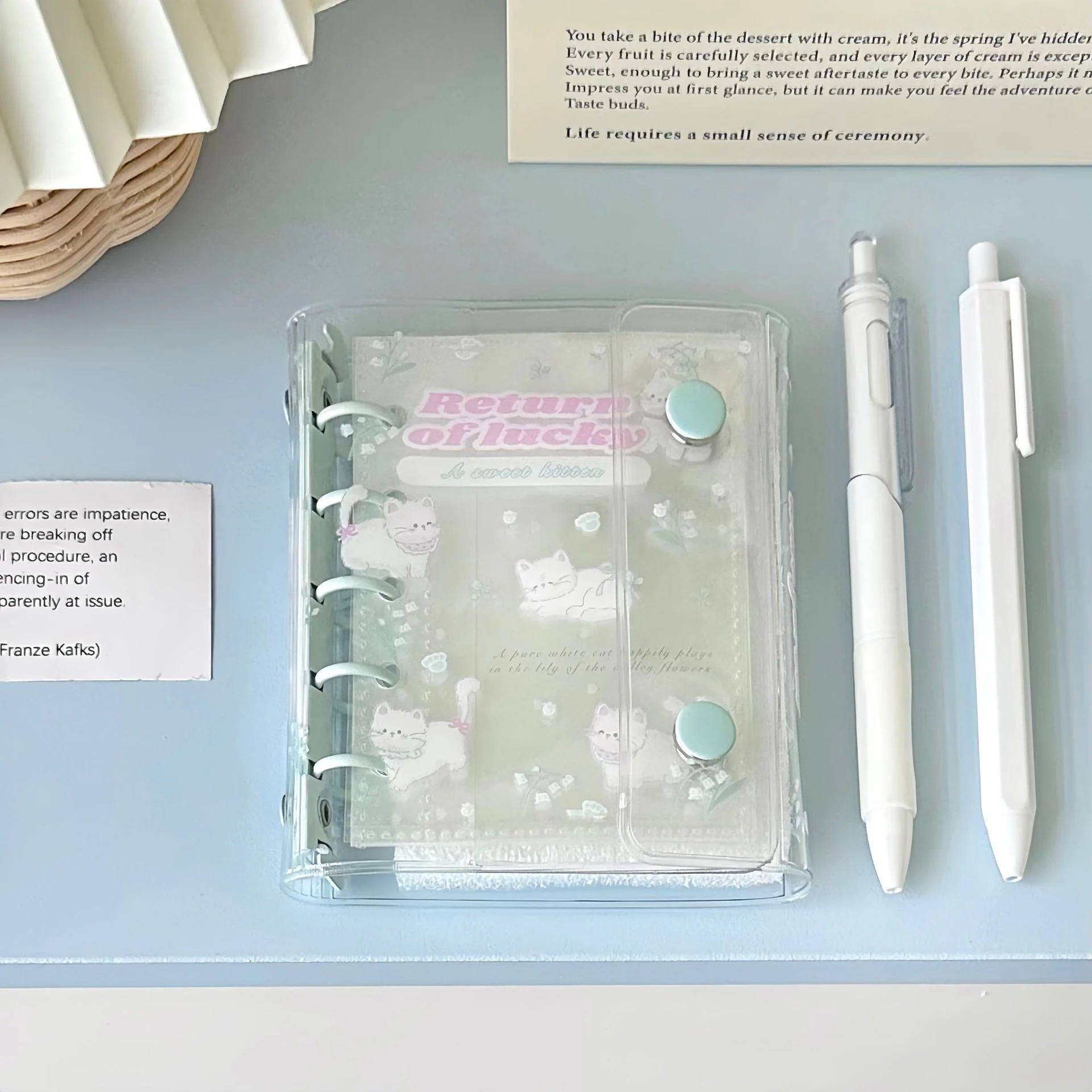 【超かわいい】【1+3 超お得セット】M5 ダブルロック 透明 PVC リング手帳 クリップ帳 フォトアルバム( 仕切り 2 枚 + 無地インナー 45 枚 + 透明ポケット 10 枚付)