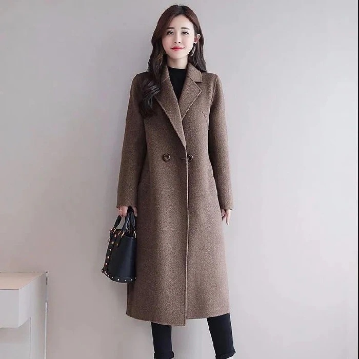 【クロスボーダー対応 韓国風】レディースウールブレンド外套 秋冬ストレートミドルロング 無地呢子コート スカーディガン風