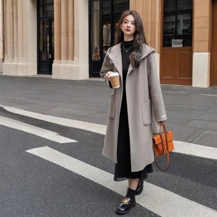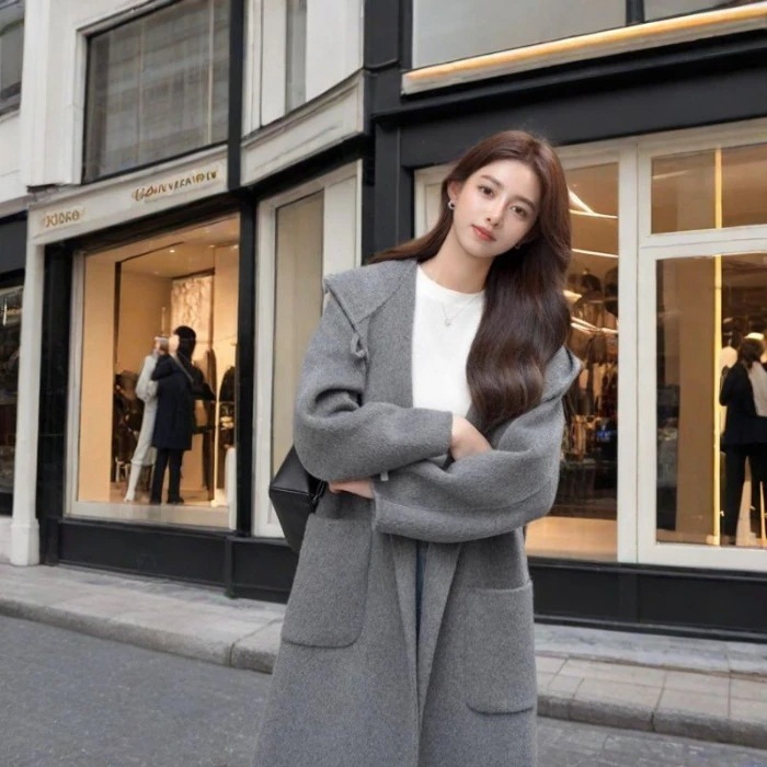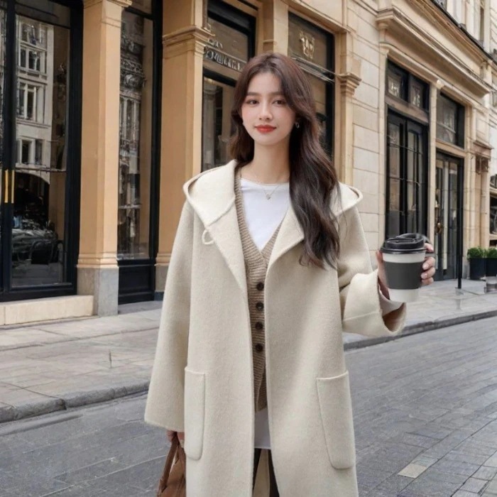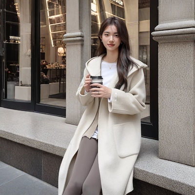 【イギリス風 フード付き】レディースウールブレンドコート 2025秋冬新作 ミドルロング カジュアル無地外套