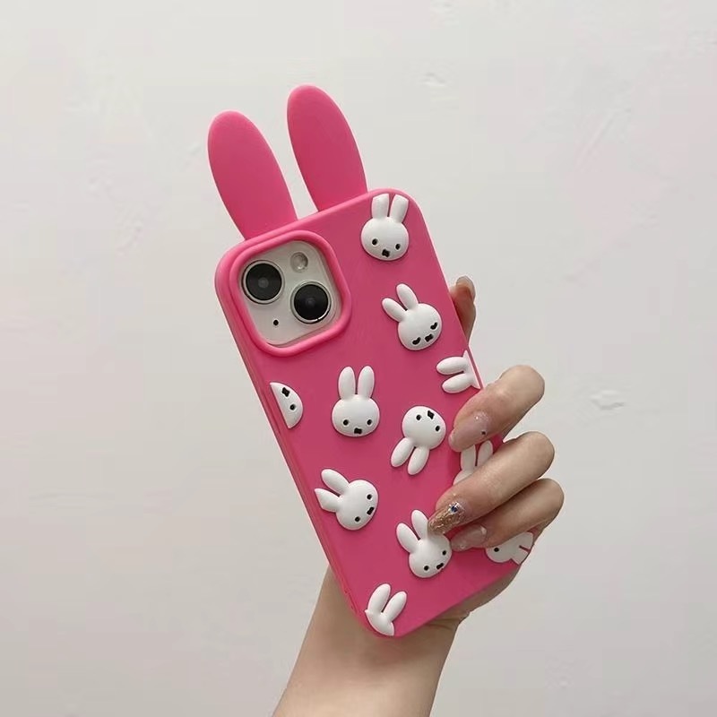 立体ミッフィーウサギ 可愛いカートゥーンシリコンスマホケース iPhone17ProMAX/16Pro/15/14/12 対応 ソフトシリコン素材 耐衝撃 誕生日プレゼント カップルギフト