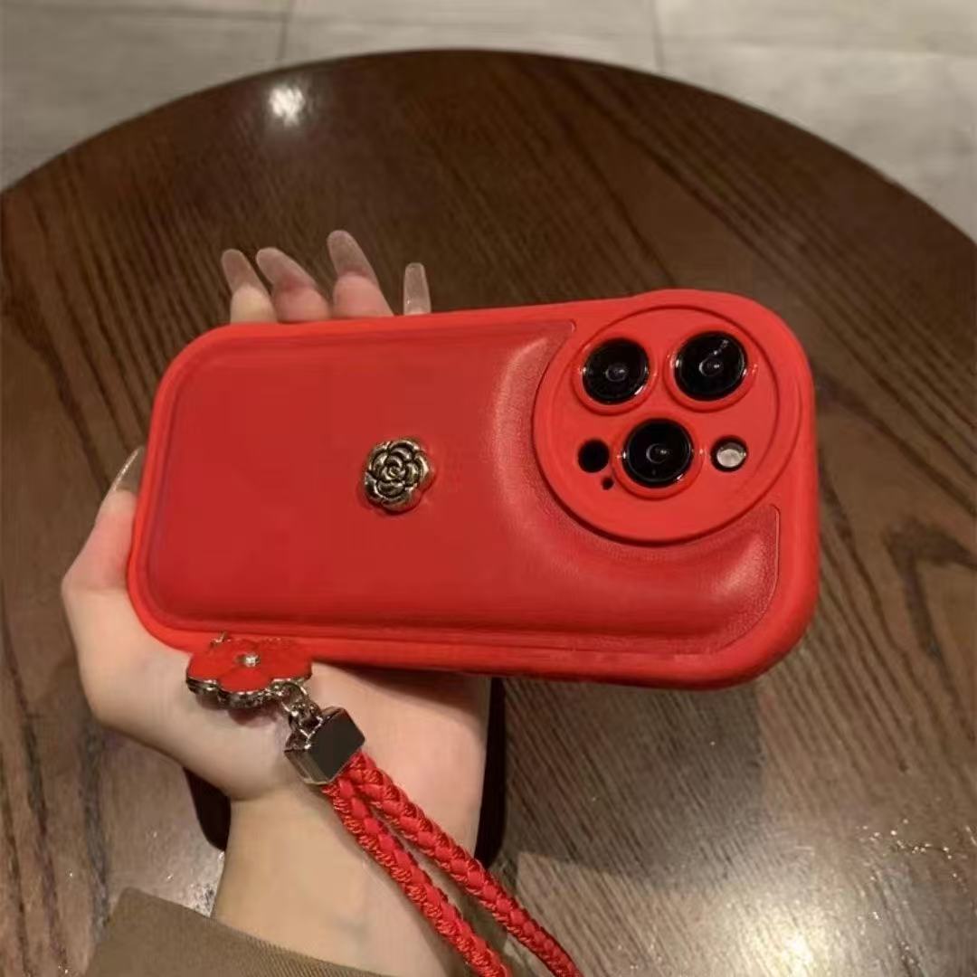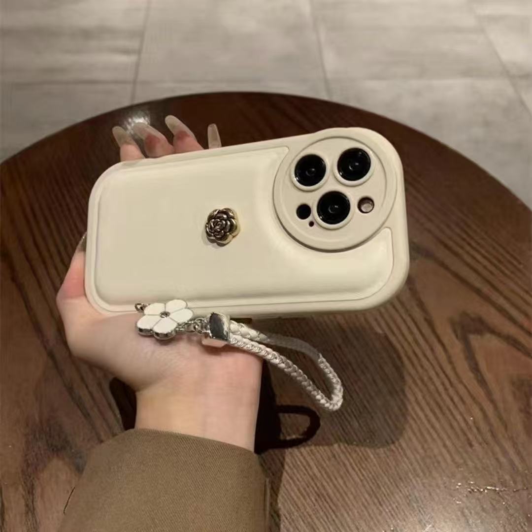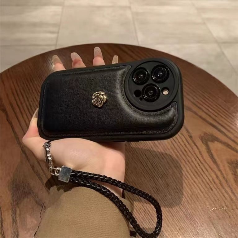 【2026年人気新作】レトロブラック ふっくら素皮紋スマホケース シャネル風ハンドストラップ付き iPhone17/16/15/14/13 対応 耐衝撃 秋冬向け 誕生日プレゼント