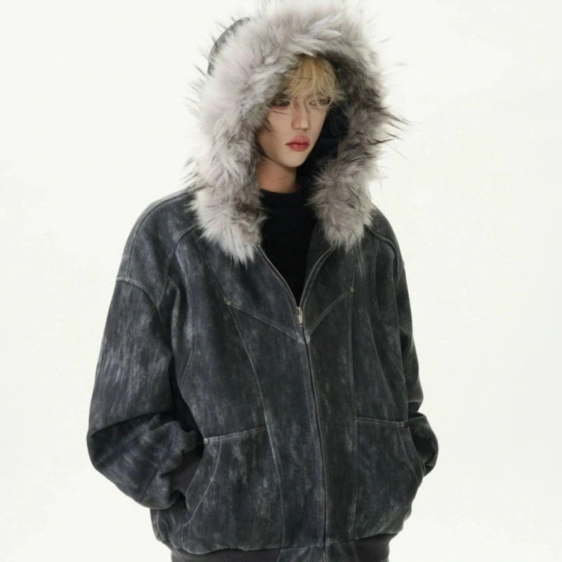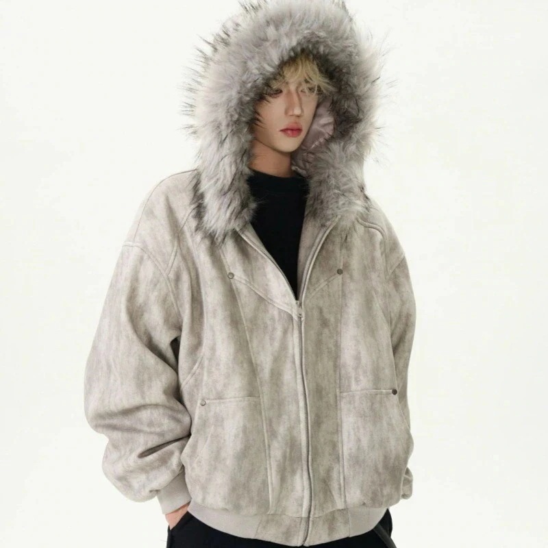 大人気 防寒 おしゃれ アウター ファーカラー 男女兼用 可愛い ゆったり 座山雕連帽大毛襟綿入れ 男女兼用 綿入れ染めハイエンド厚手保温コート