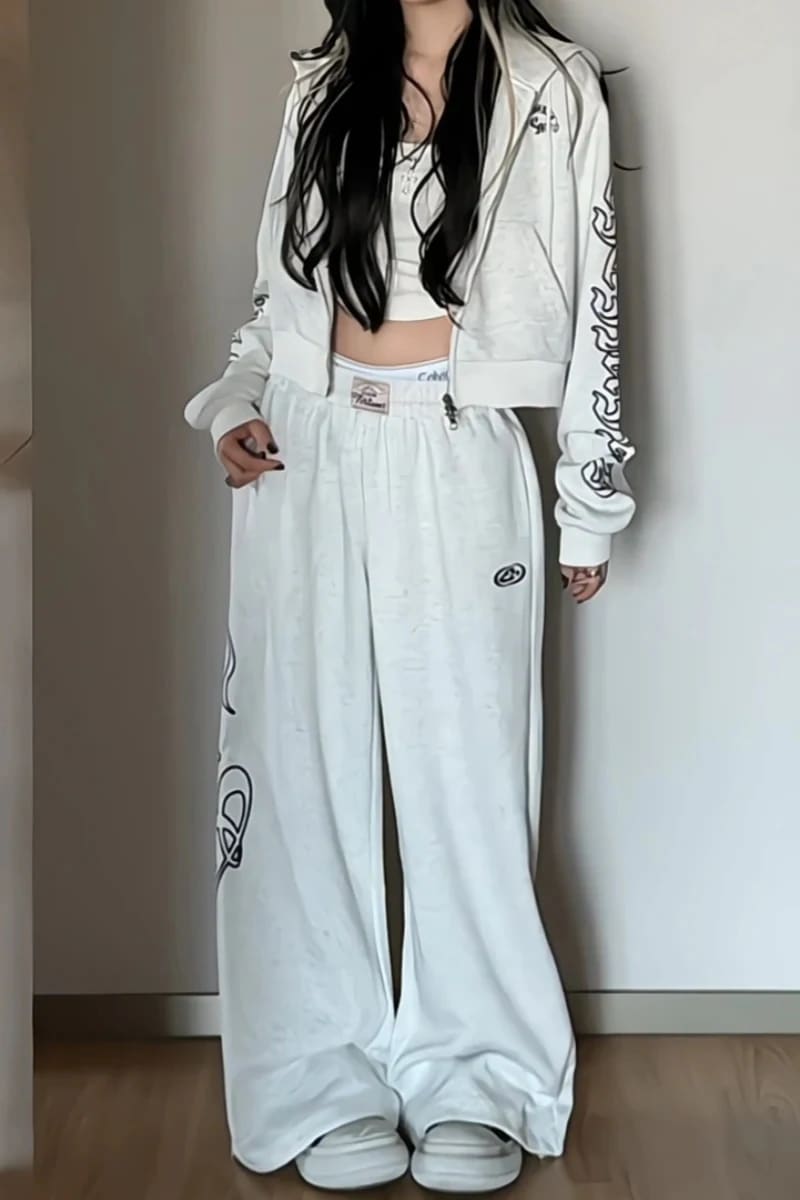 2025秋冬 ゴシックロゴで甘辛MIX 韓国っぽ かわいいレディースロゴフード付き長袖アウターフーディーブルサイズ丈トップスカジュアルスポーツファッション系袖アップシルエットダブルトラック上下羽織り