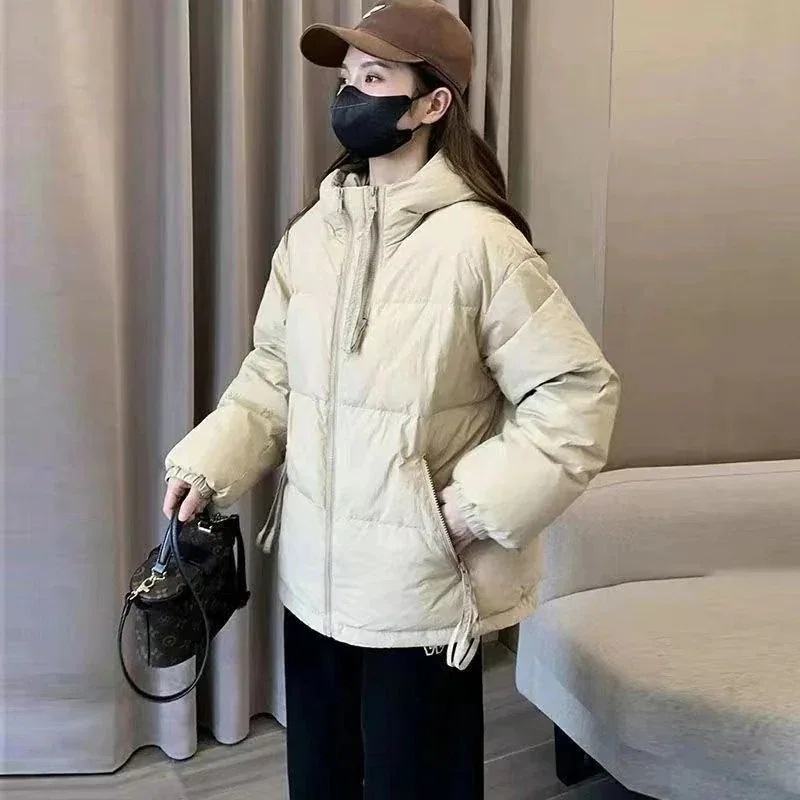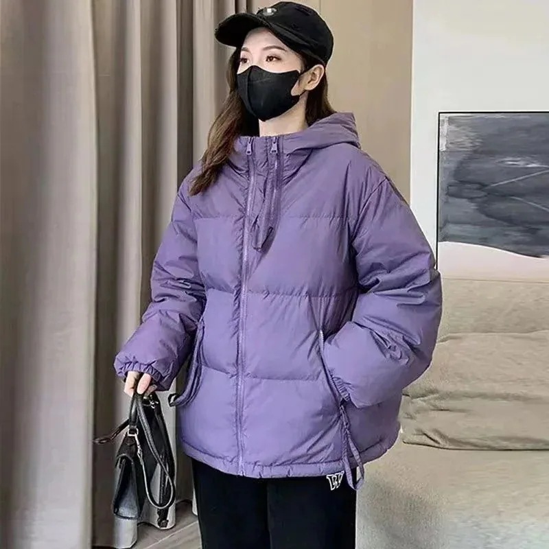ダウンジャケット2025新作冬用ゆったり厚手綿入れコート小柄サイズ フード付きショート丈コート綿服ブラック ダウンジャケット