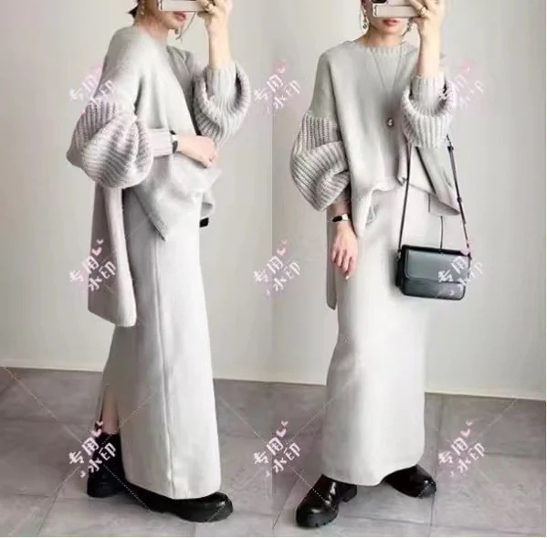 【急速出荷】2024秋冬新品 レディース 秋冬 レディースセットアップ ニット アウター 体型カバー トップス おしゃれ セーター ニットスカート 二点セット 上下セット セットアップ メガ割