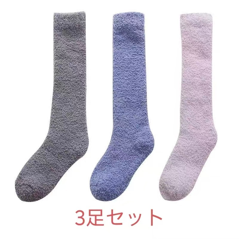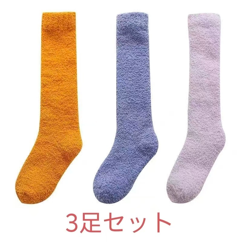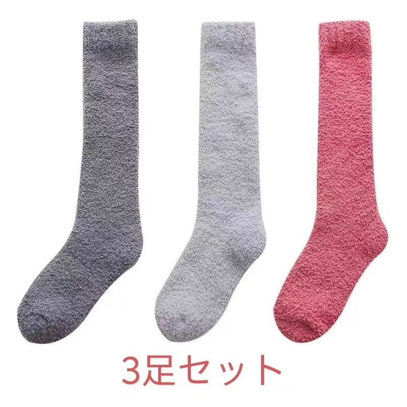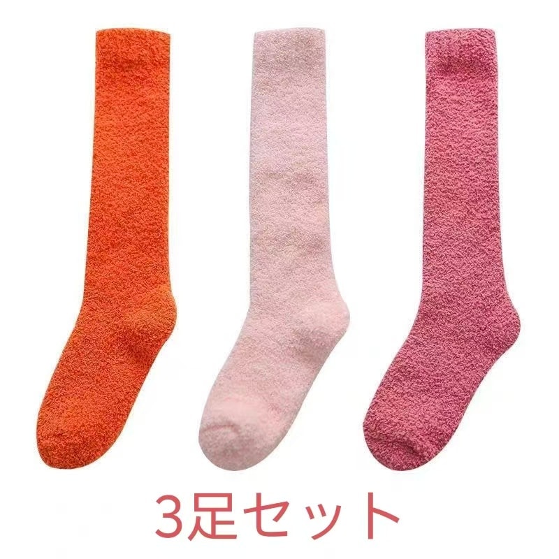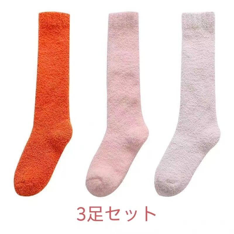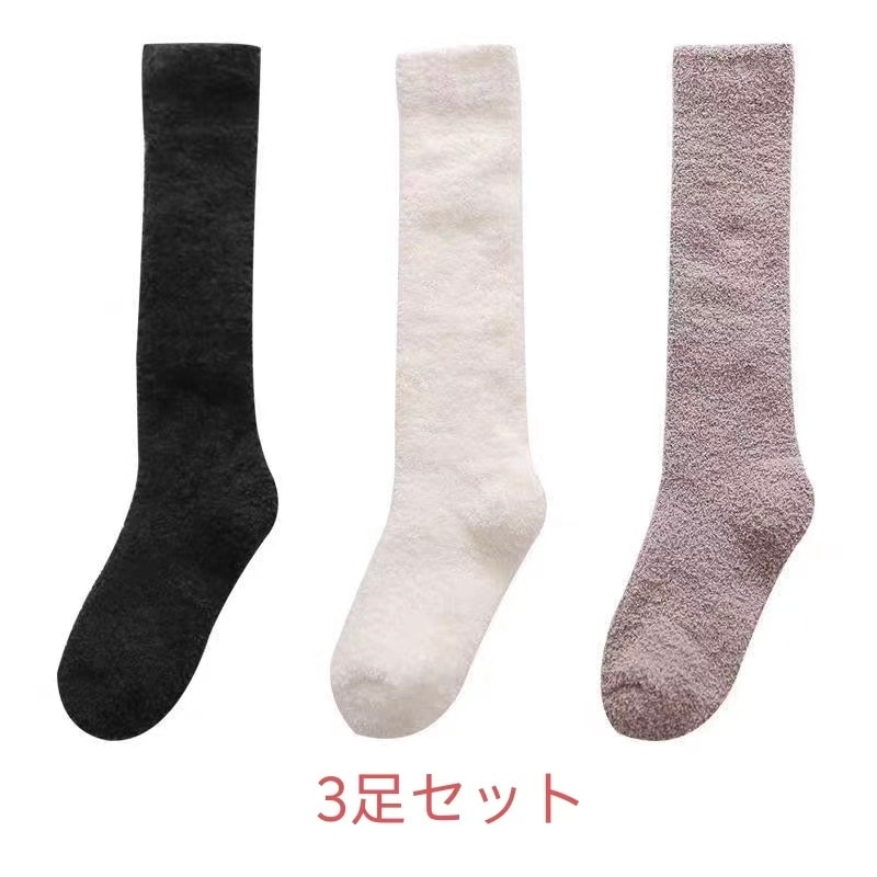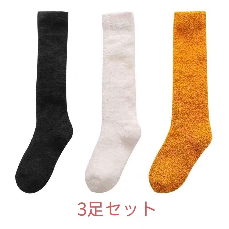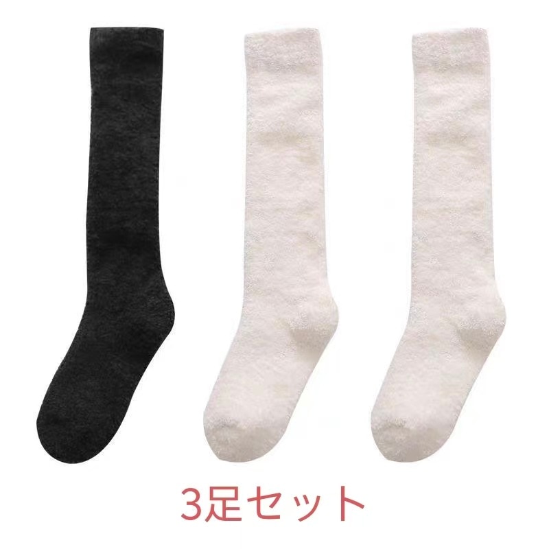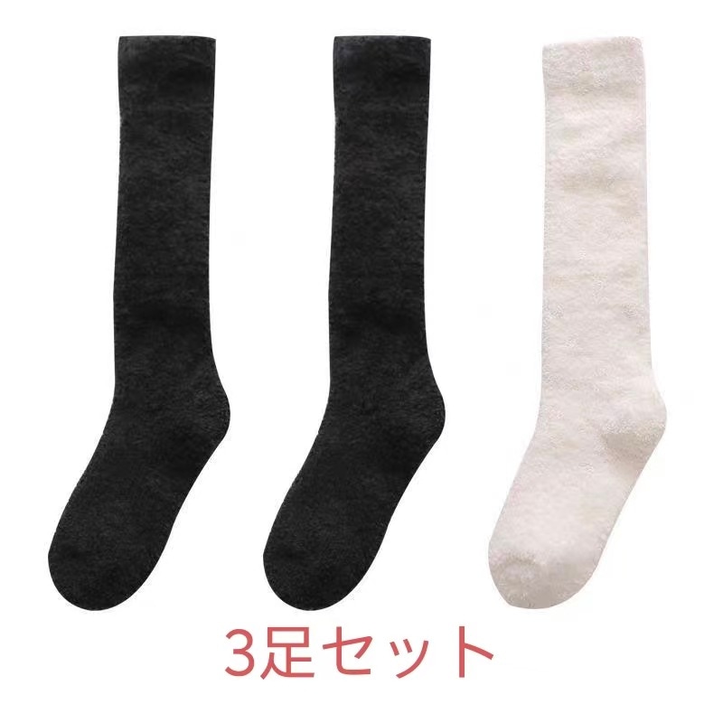 3足セット韓国靴下ハイソックス全12色 冷えとり 3足組 あったか靴下男女兼用 履くホカロン 吸湿発熱 抗菌・防臭 コーラルフリースの極厚ソックスレディース ソックス 冷え取り靴下 ブラック 黒