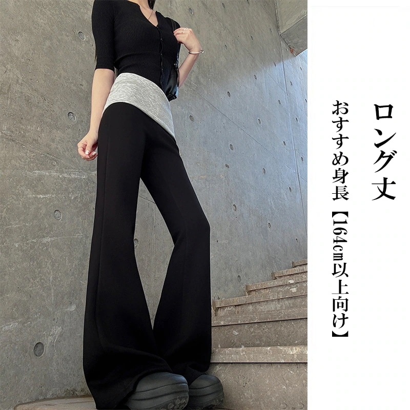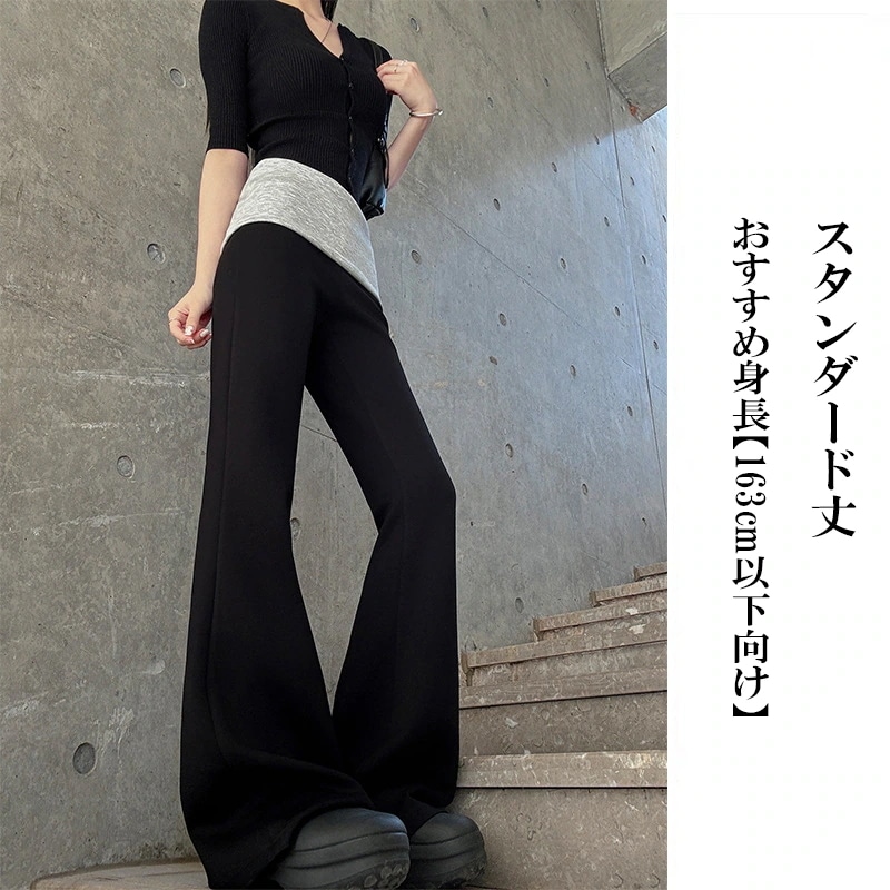 2025秋 韓国新作着痩せ!細身 脚長美脚のカーブフレアパンツ ~ 低身長・高身長対応のゆったり体型カバーワイドパンツレディースパンツ