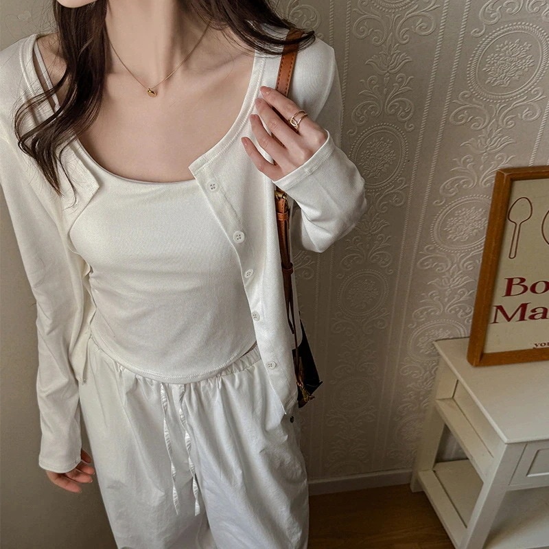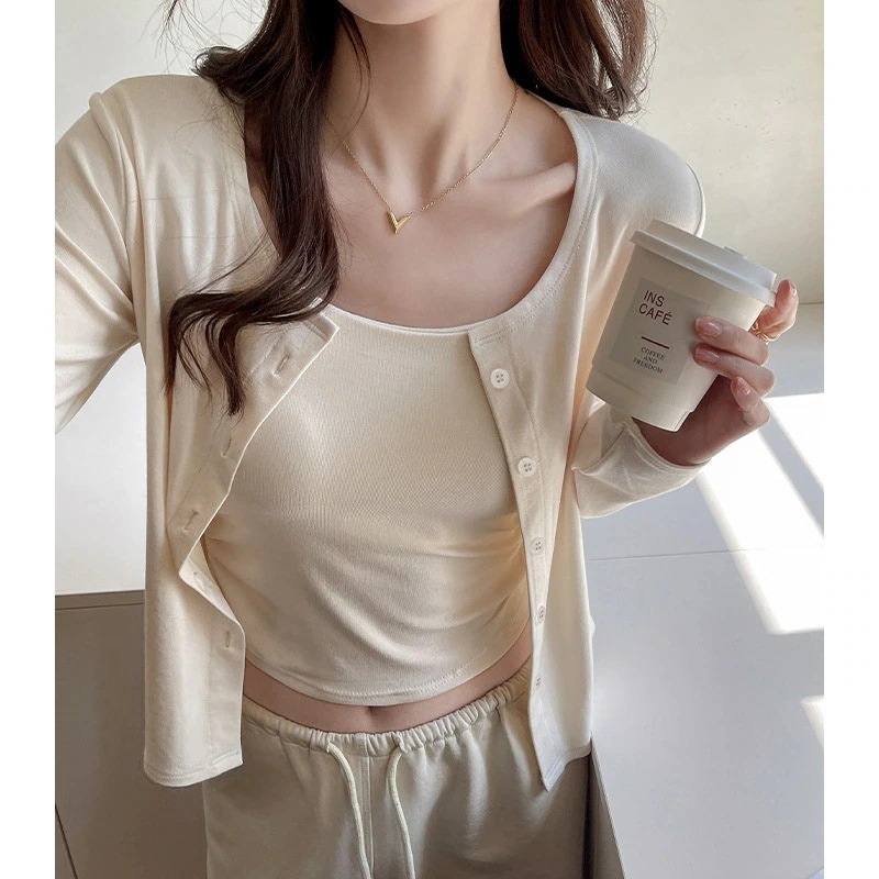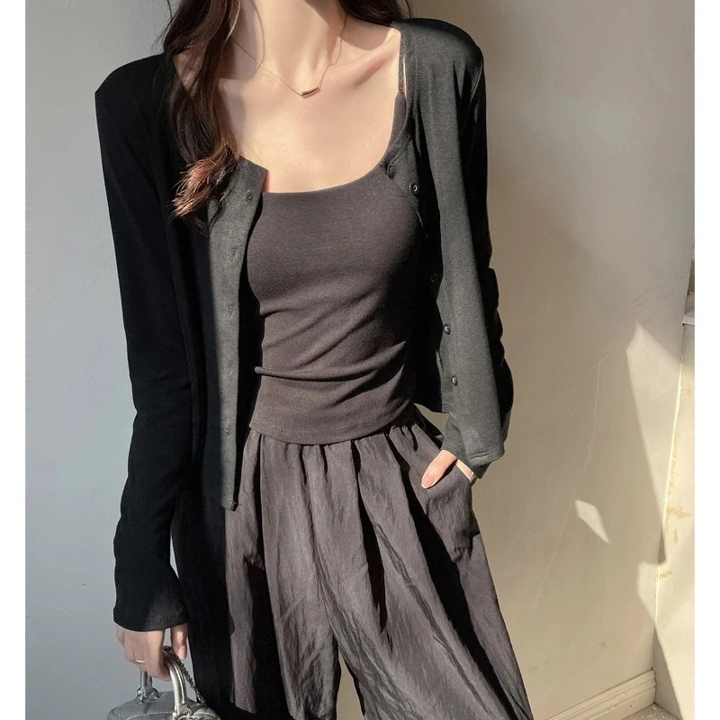 2025【韓国製】カーディガン タンクトップ セットアップ 秋 レディース 通勤 通学 おしゃれ シンプル 羽織り インナー すっきりシルエット マルチ使いできるトップス