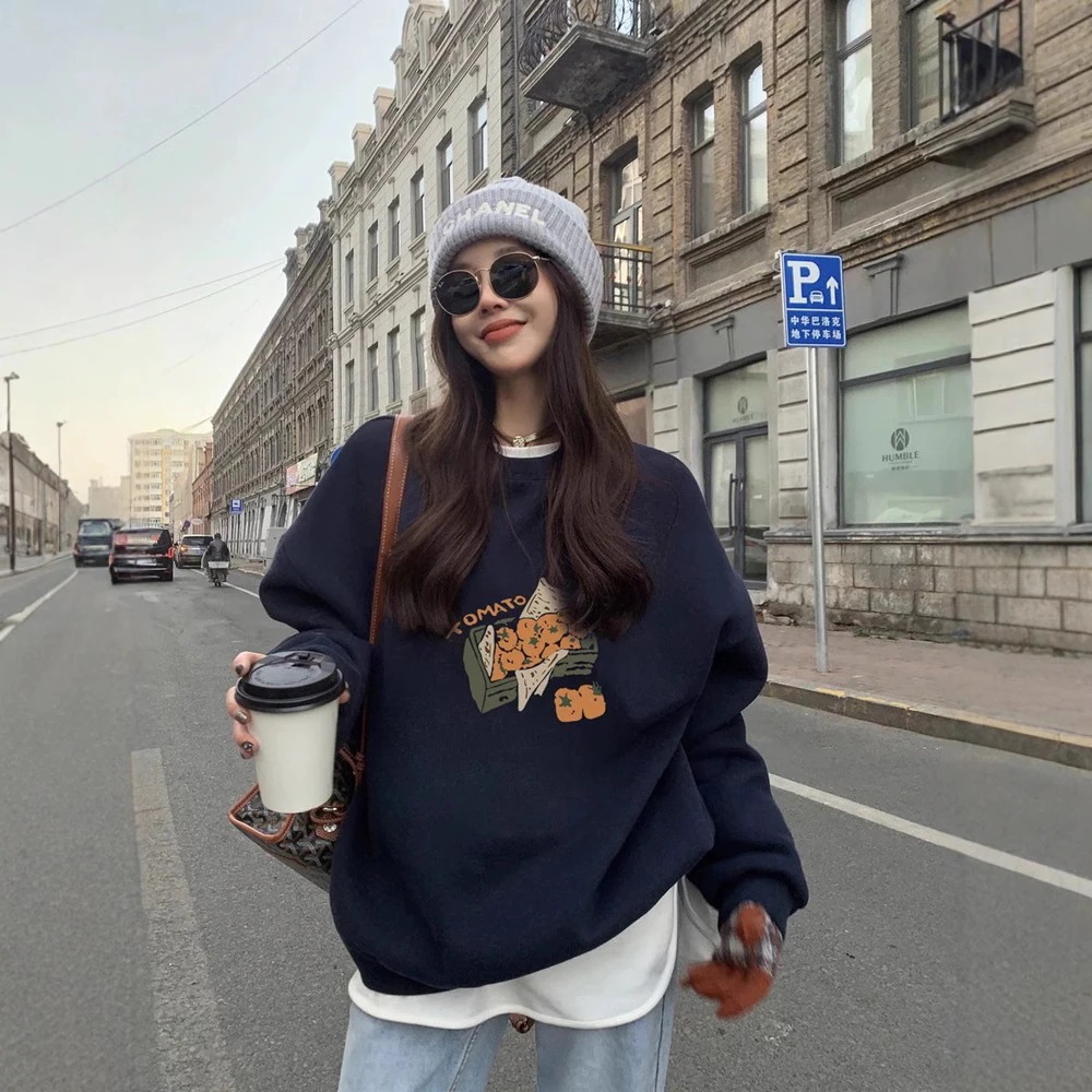 【2025新作】韓国風 レディース 長袖スウェットシャツ 秋冬 フリース裏起毛 けがわみたいな肌触り ゆったり あったか おしゃれ トップス