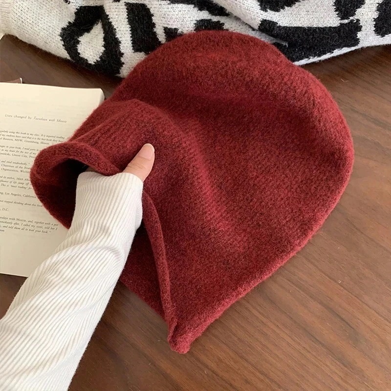 【2026秋冬帽子 】バラクラバ風ニット帽 ウール混紡ニットビーニー レディース 人気网红帽 顔痩め効果 ボリューム堆堆帽 ビッグヘッド対応 保温包头