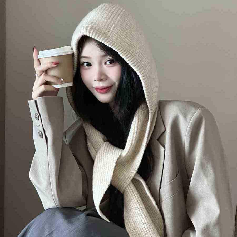 【2026秋冬帽子】韓国風インスタバラクラバニット帽 男女兼用 帽子マフラー一体型 耳かぶり保温 厚手毛线帽 百搭オシャレ バラクラバ風ニット帽