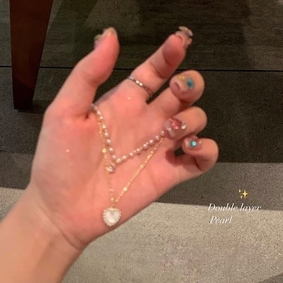 ネックレス 美しい首元ネックレスネックレス短めが可愛い!チョーカーネックレス二層パールラブネックレス韓国新作スタッキング鎖骨チェーン ネックレス美しい