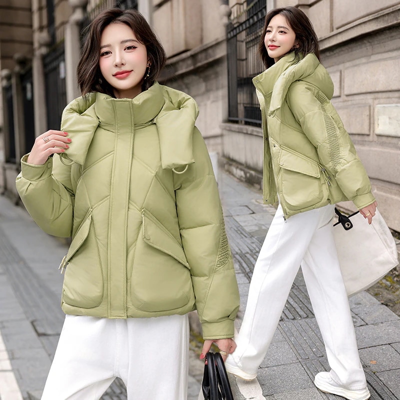 2026年冬新作 韓国風ダウンジャケット レディース ゆったりフード付きショート丈 厚手 ダウンコート