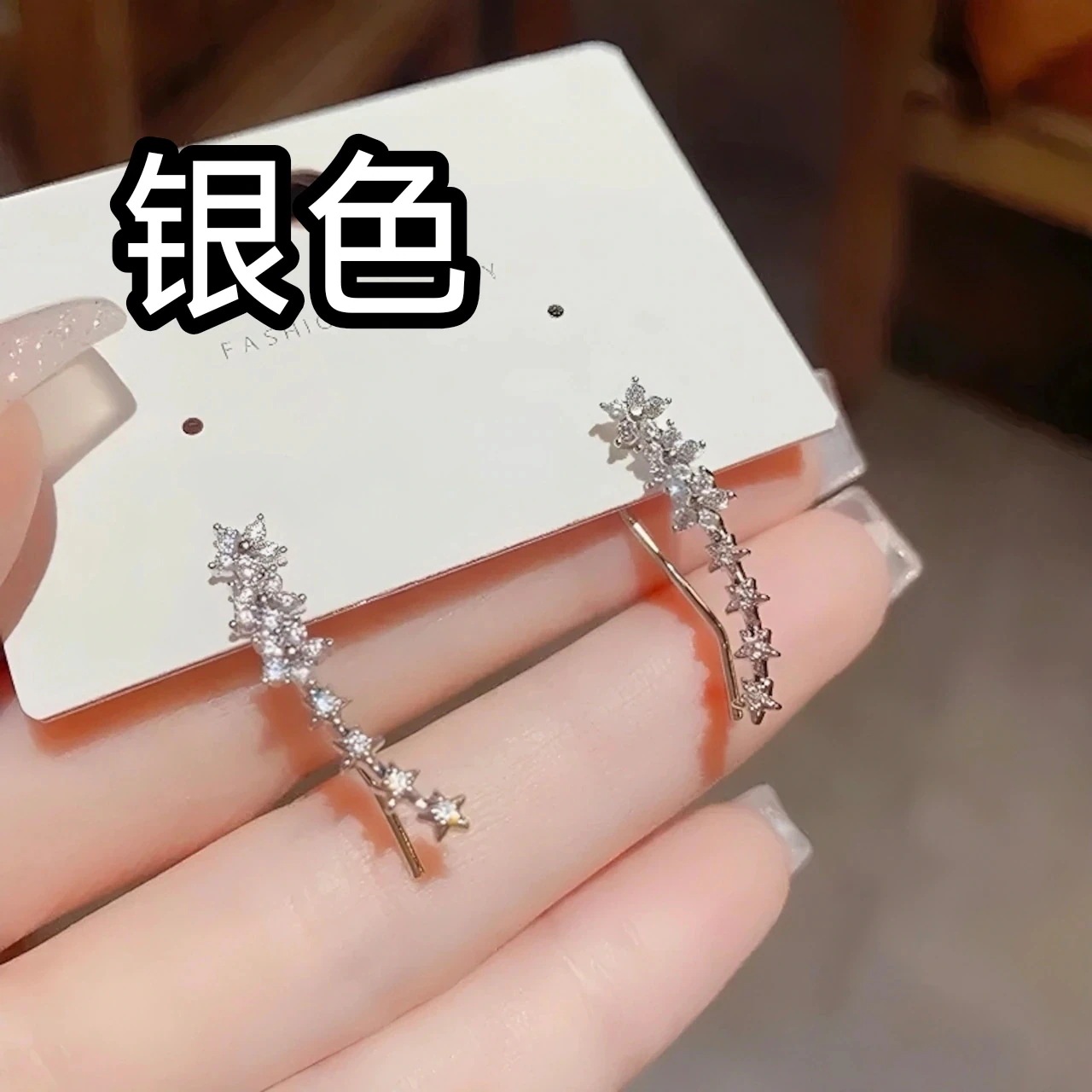 小さなフラワーイヤーカフ ピアス レディース 星形 可愛くキラキラ フラワーデザイン ジルコニア付き 925シルバーポスト 安全で快適 誕生日 クリスマスギフトにも ナチュラル