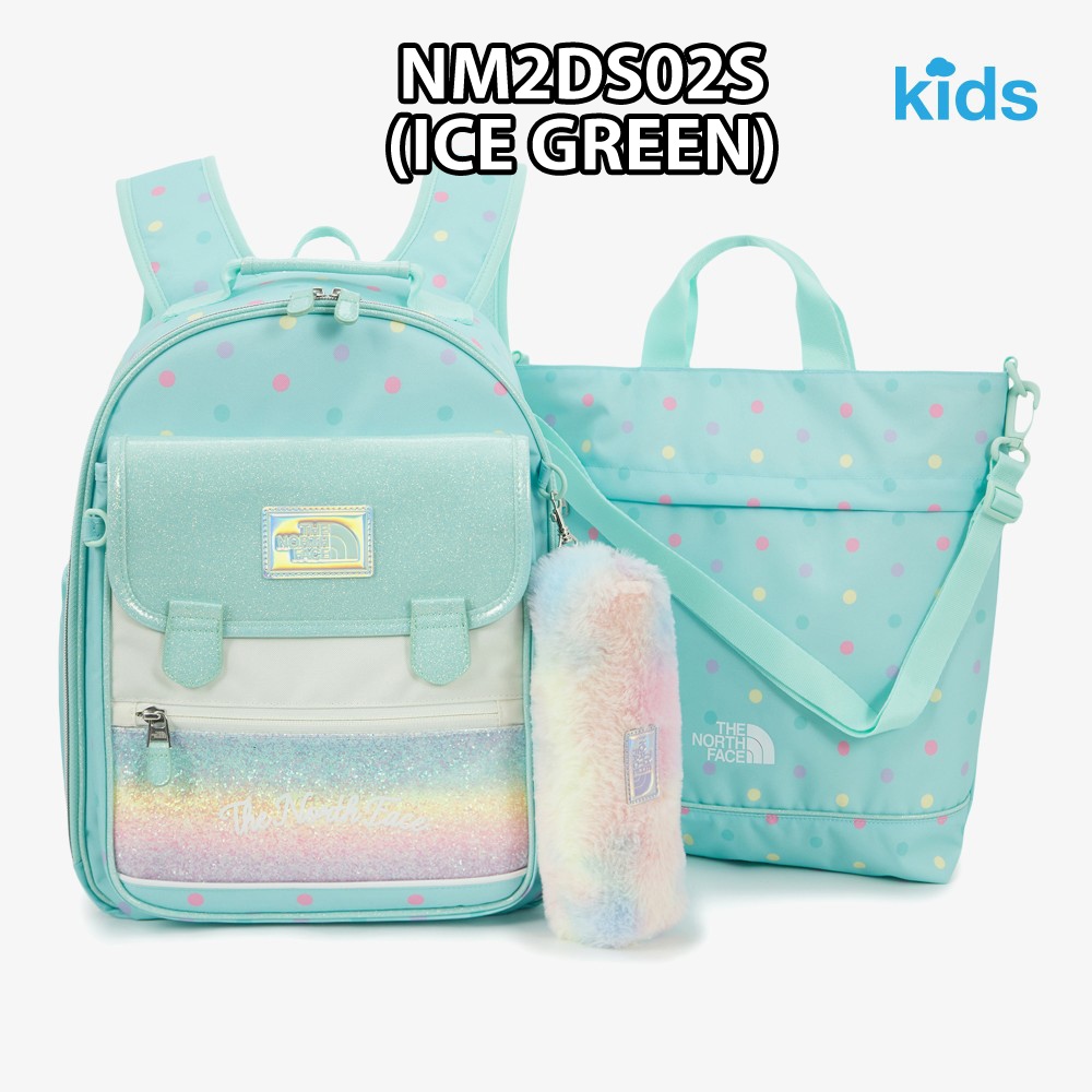 ザノースフェイスNM2DS02 GS CANDY DOT SCH PACK 25FW バックパック グラデーション レインボー パステル 3点セット 入学 新学期 通学 小学生 軽量 収納 反射 コーデ提案 パーカー