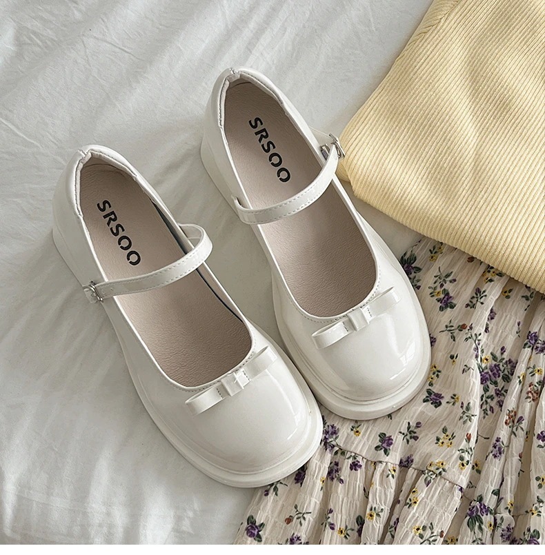 ローファー ハイヒールメリージェーンパンプス女性新作リボン付き丸トゥ革靴