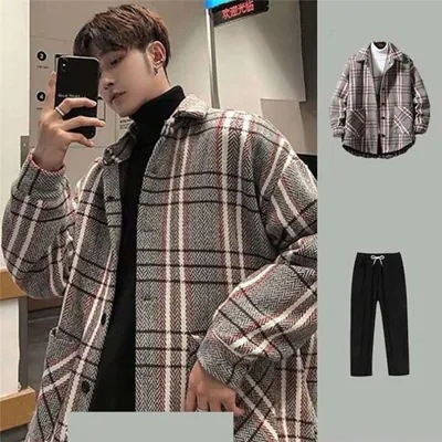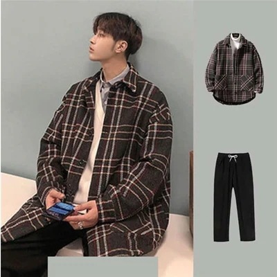 チェック柄 ウールコート+セーター+カジュアルパンツ メンズ 2枚セットor3枚セット新色追加