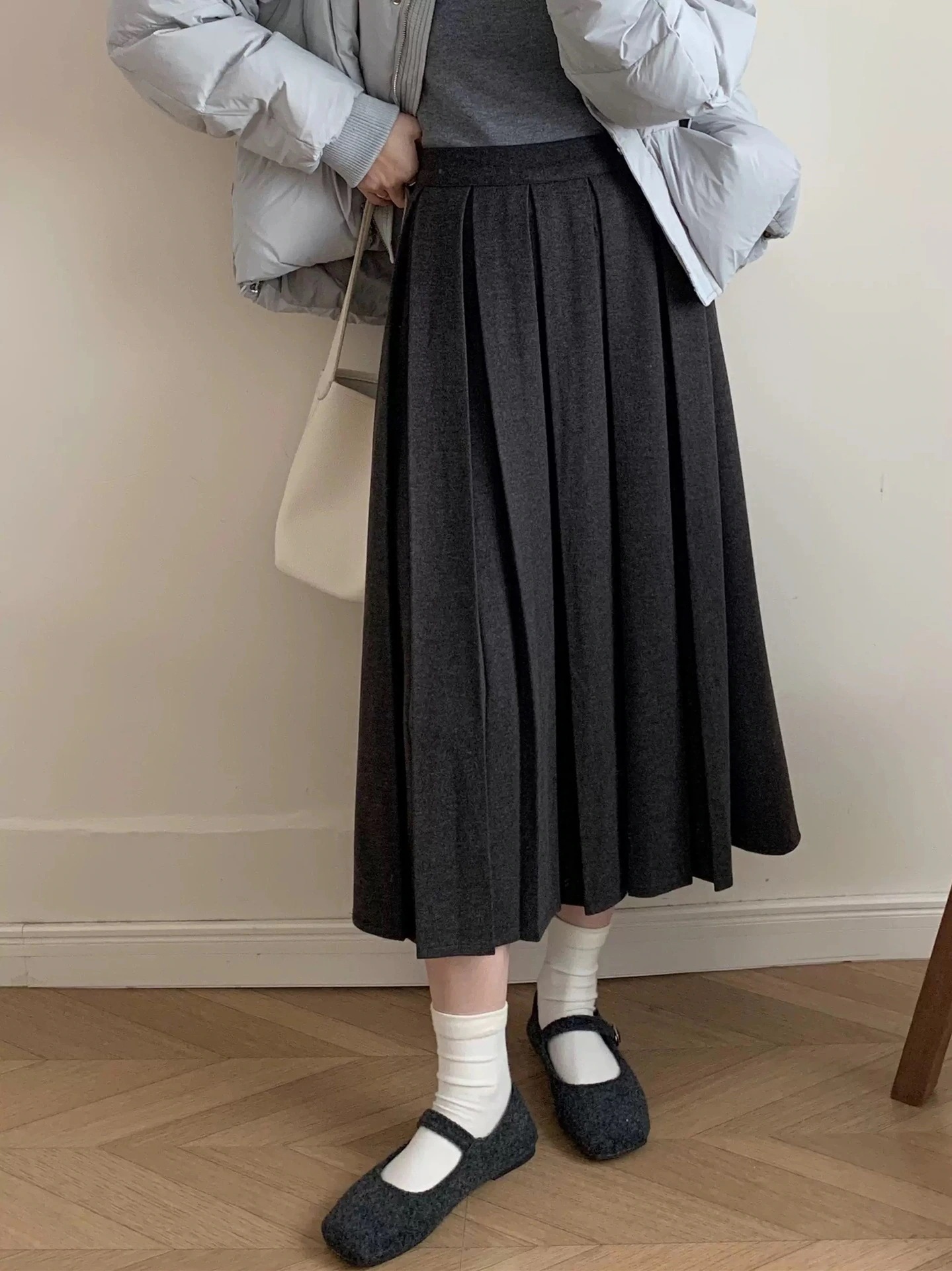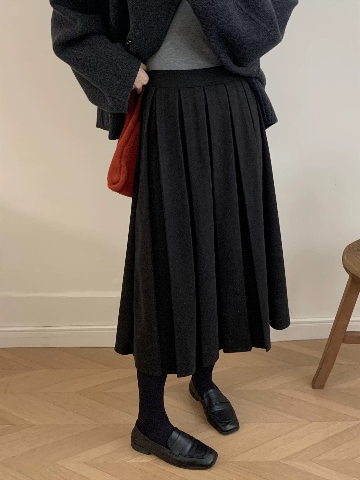 激安新入荷人気【3日出荷】秋冬ニットウールプリーツ レディーススリム効果 ミッドレングス A ラインパラソル スカート