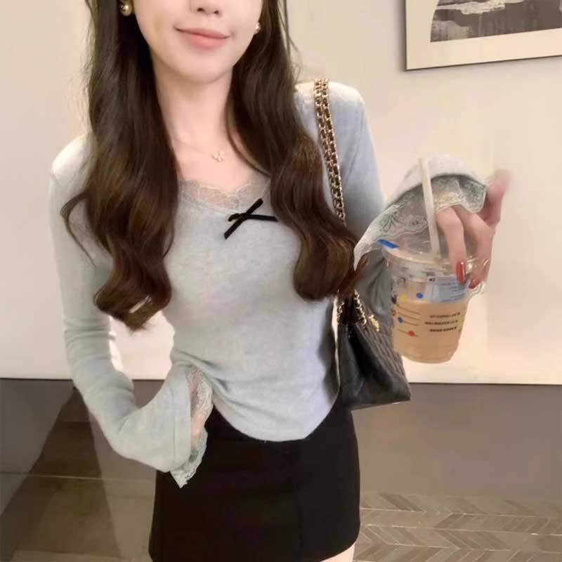 2026大人気2026秋冬 長袖Tシャツ ショート丈カットソー レイヤード風 重ね着 トレンドシルエットラウンドネックトップス韓国系ストリートへそ出しタイト Tファッションレディース