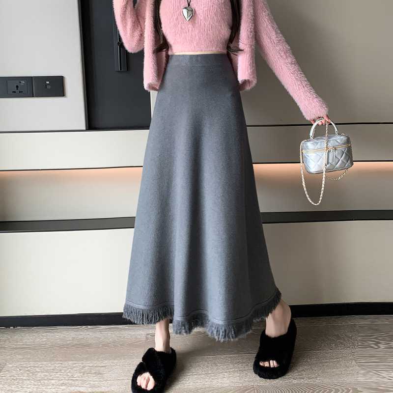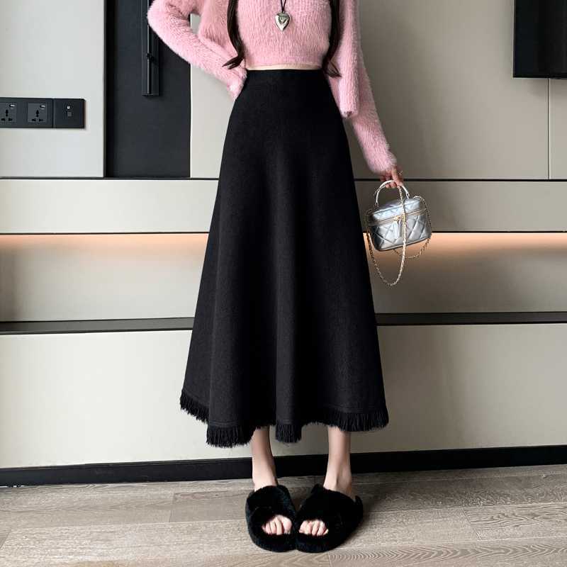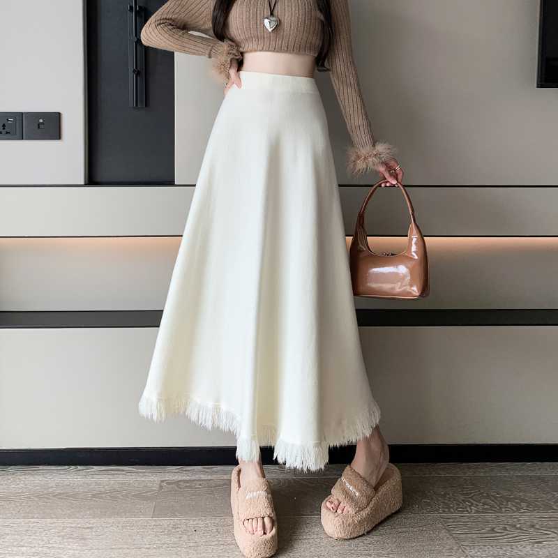 2026年新作【3日出荷】秋冬フレアニット 加厚毛糸素材 ツイスト編みプリーツフリルハイウエスト スカート