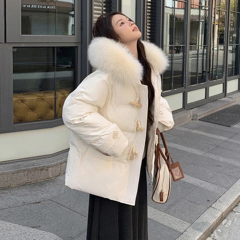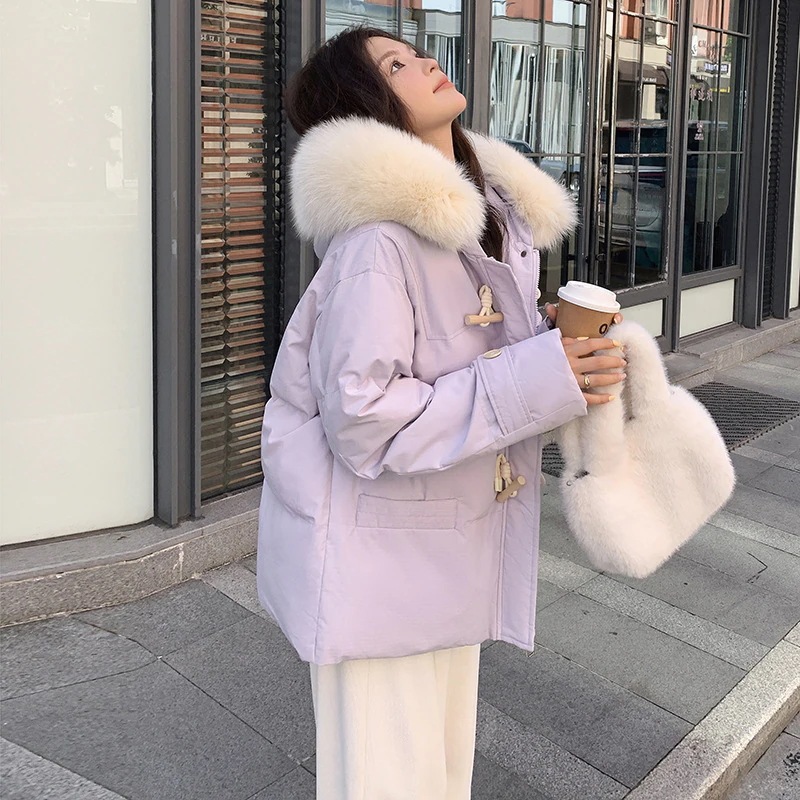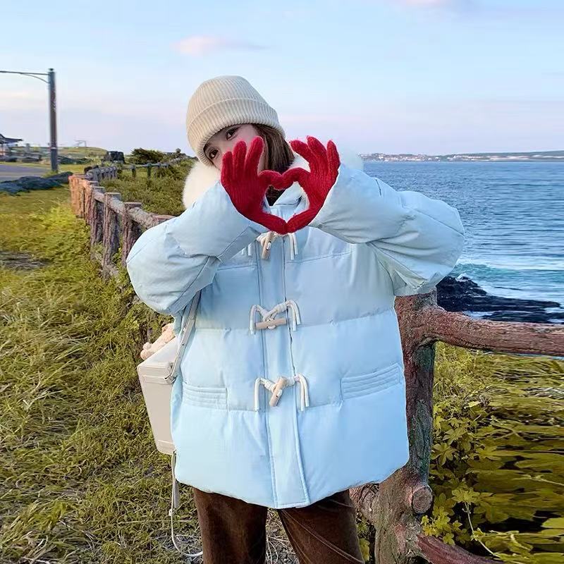 新色追加!【3日出荷】冬 レディーホーンボタンダウンキャンバスコート ルーズ フリースカラー加厚 アウター ムートンジャケット