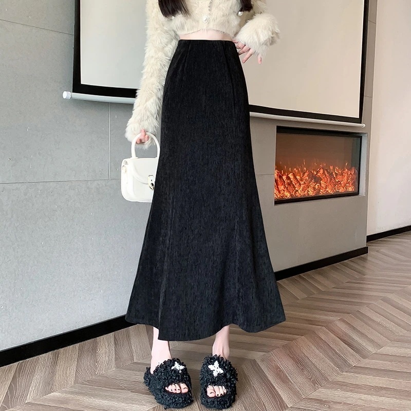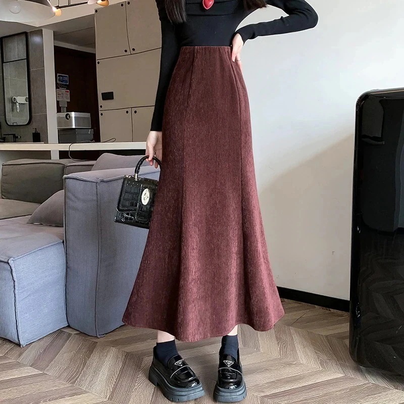 新入荷【3日出荷】フィッシュテールハイウエスト 秋冬スリム効果 ミッドレングス ボディコン スカート