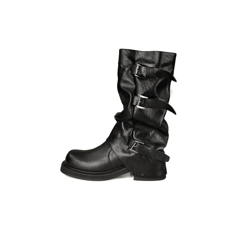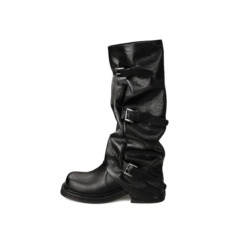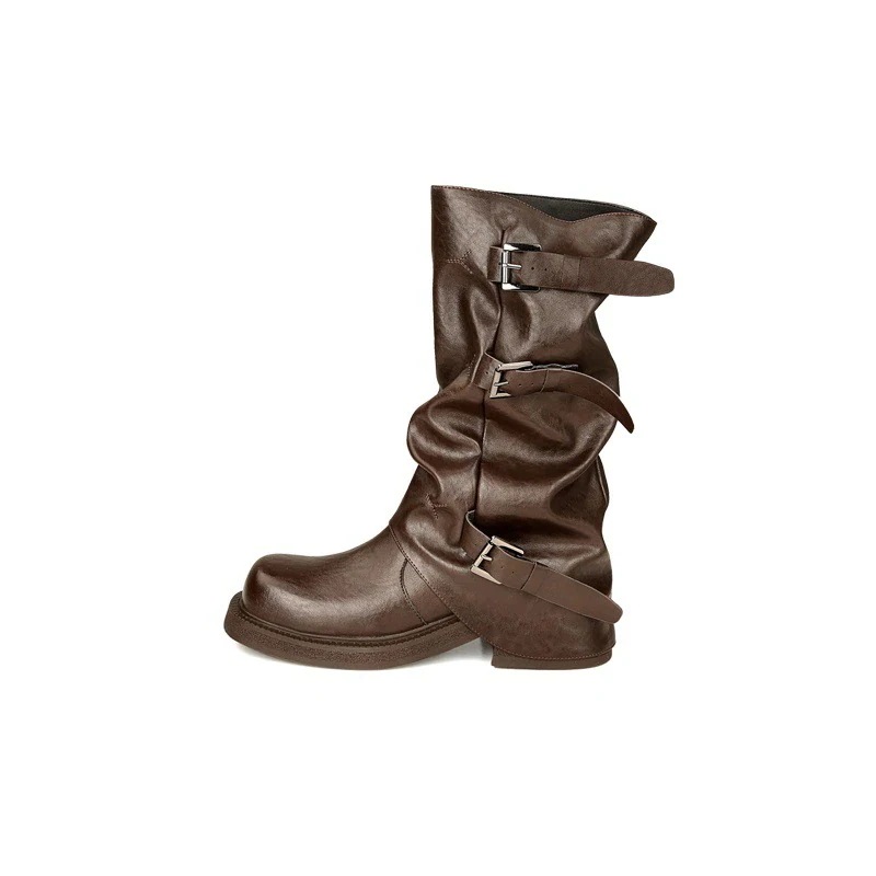 新色追加【2枚購入で 2oo円OFF!】人气新作ブーティー ヒールアップ 5cm ベルトバックル スクエア&ラウンドトゥ 琥珀 光沢風 ブーツ ウエスタン 積み上げ ロングブーツ
