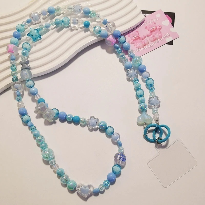 超人気3日で出荷携帯電話のストラップの長いタイプの斜め掛け女性のストラップのカラフルな五角星のりビーズストラップ