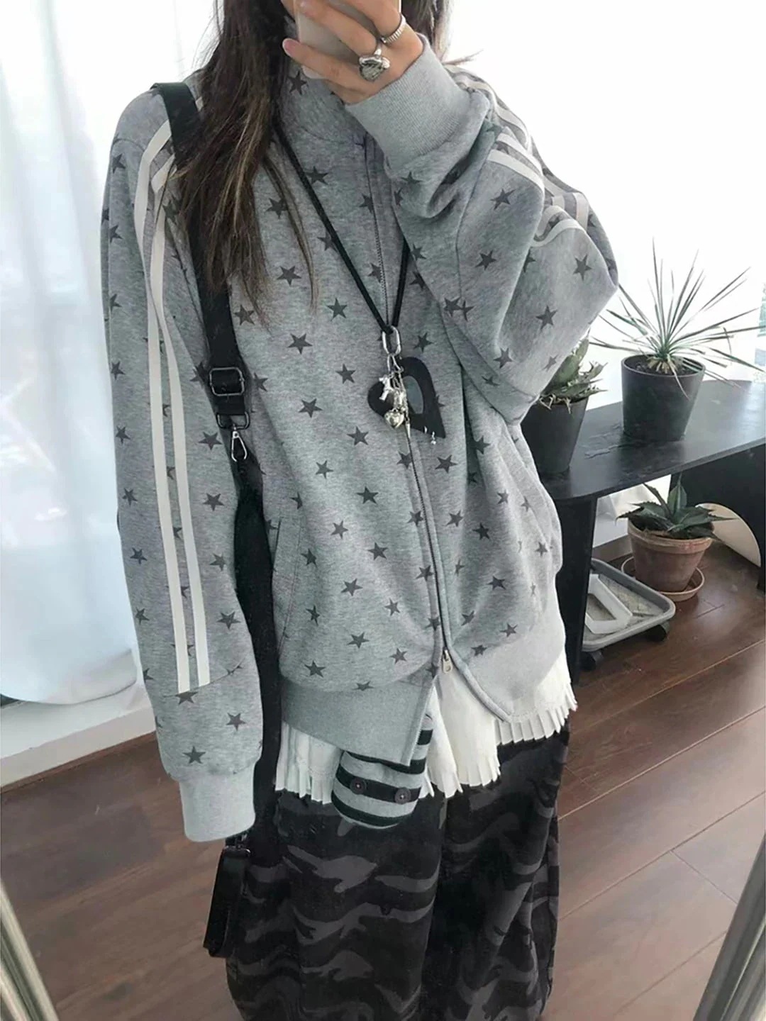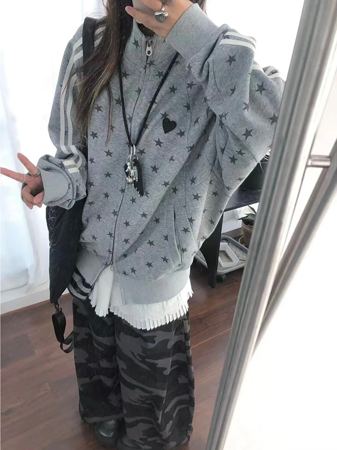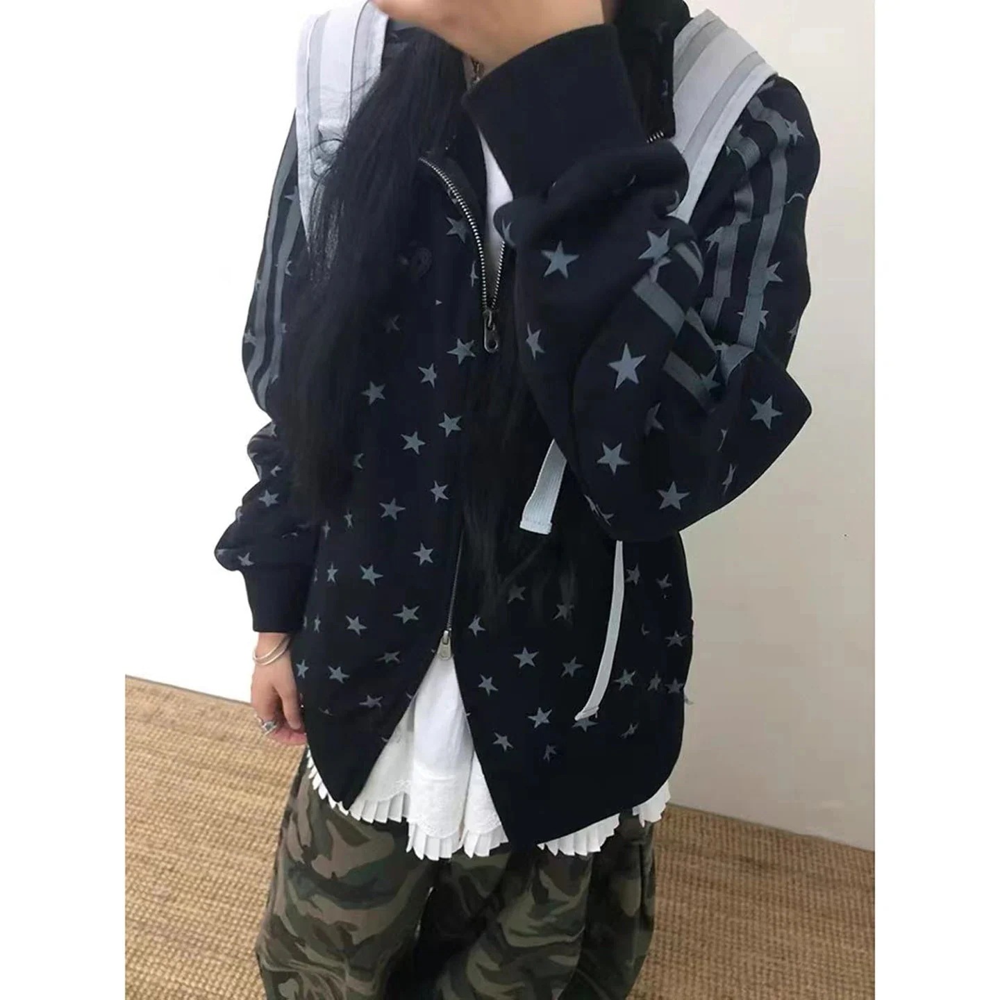 2026流行2026秋冬 韓国風 2type 裹起毛 レトロプリント かわいい レディース ハイネックアウター柄ブルゾンスポーティー配色コーデ長袖トップススポーツサイドカジュアルファッション系フル丈ト
