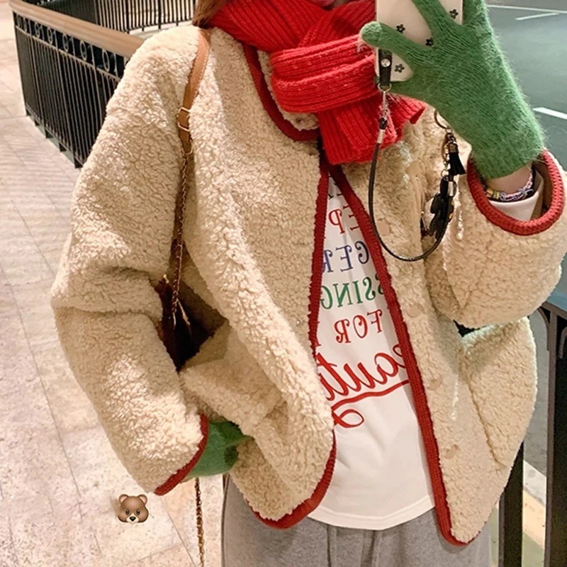 LA PELLE人気SALE【3日出荷】 フェイクファーコート 韓国風 ライトブラウン ラペル ラムウール コート 2026 冬 新作 ゆったり 保温 綿入れ 長袖 トップス