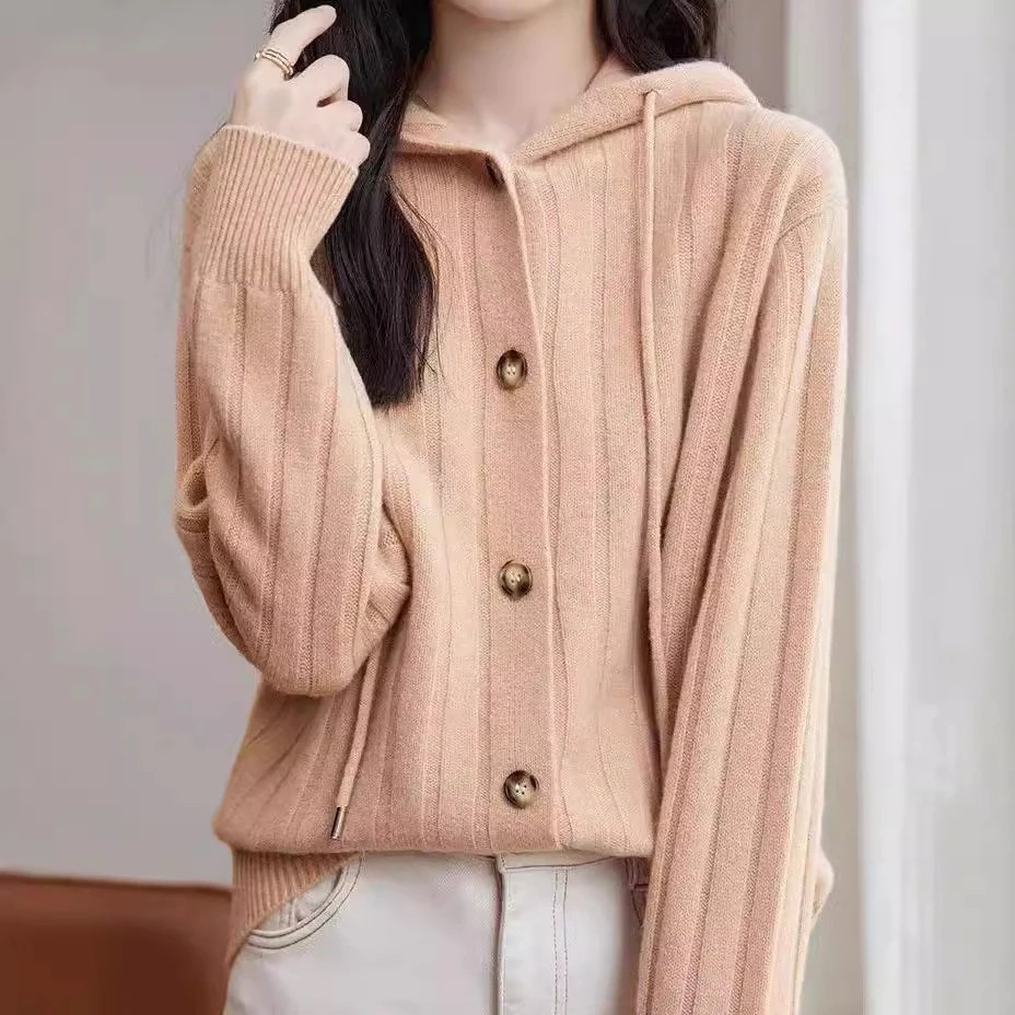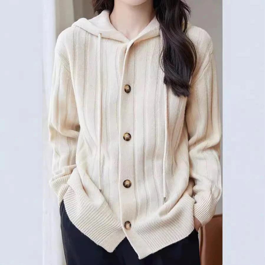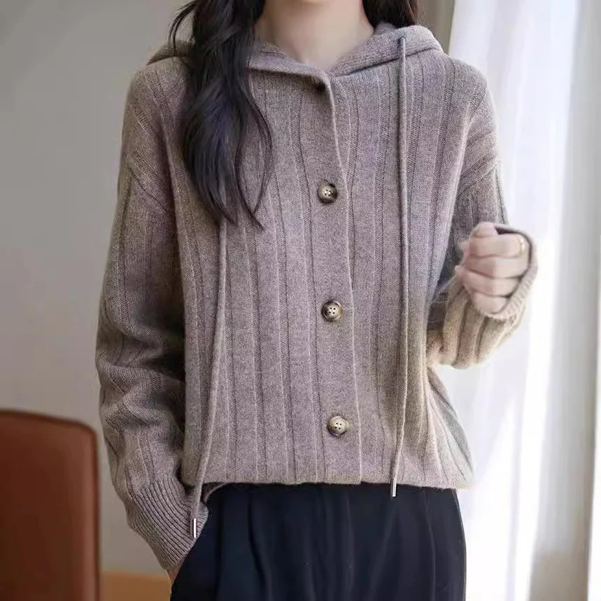 【激安販売】大好評【早割SALE】秋服 シンプルフード付きニットカーディガン 無地 長袖トップスニットシアーシャツ 日韓国ファッション