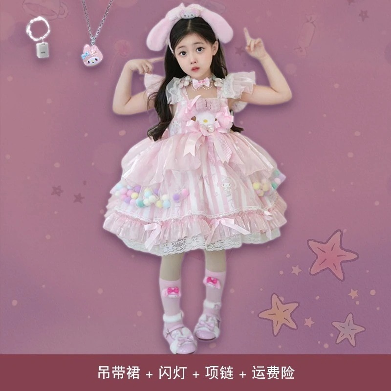 爆裂超特価女の子cosメロディースカートサスペンダースカート子供ロリータプリンセススカート诞生日ドレスサンリオワンピース