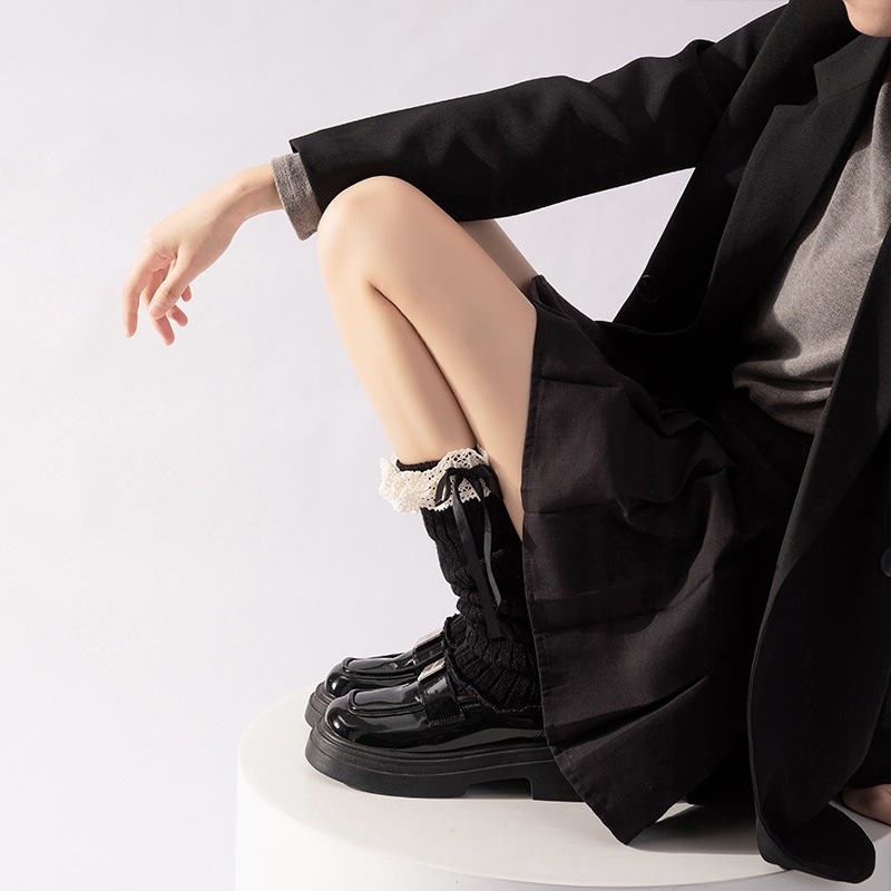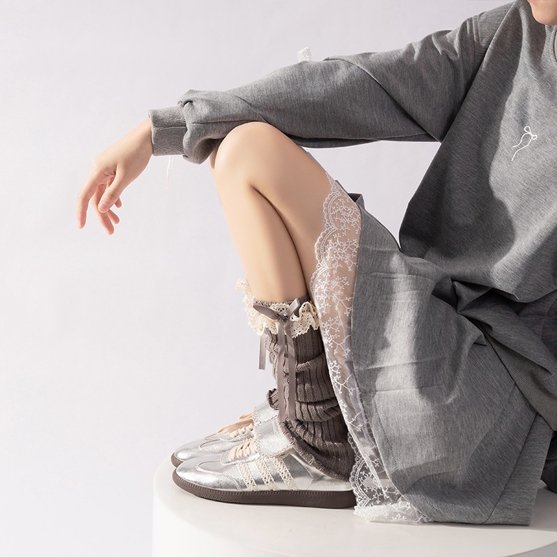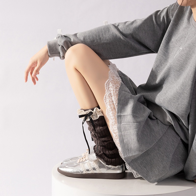超人気2026秋冬防寒 かわいい リブニットレース切り替え 靴下 ミドル丈 ショート ルーズミックス ファッション きれいめ 大人っぽ上品 ゆったり着回しフェミニンカジュアル学生女子高生レディース 韓