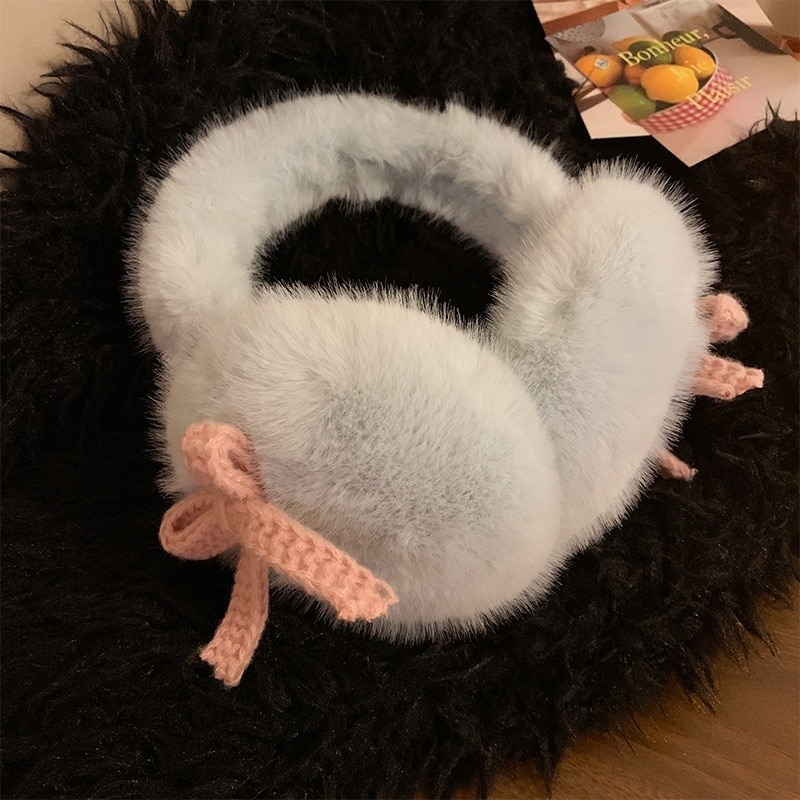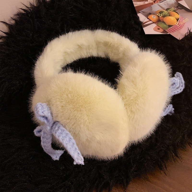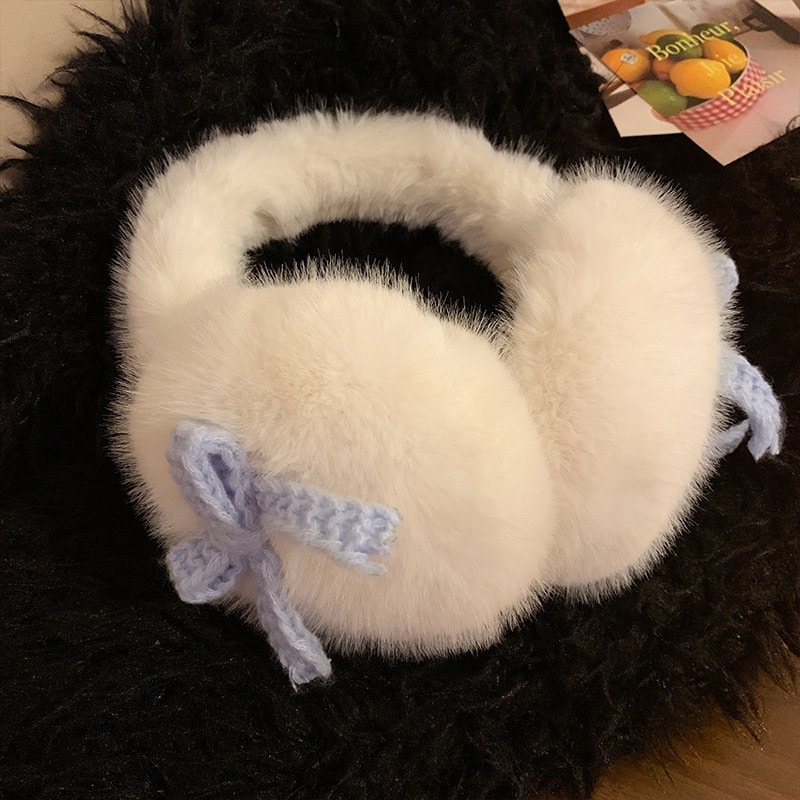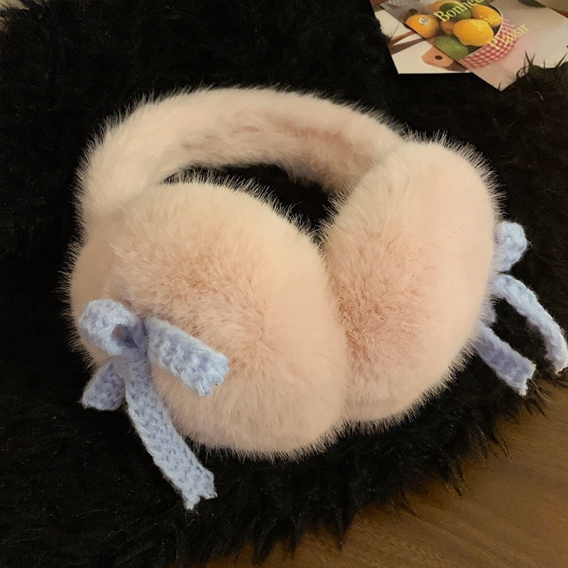 新色追加!【3日出荷】リボンミルクブルーフリース レディー秋冬フリース入り加厚保温 自転車用 イヤーマフ