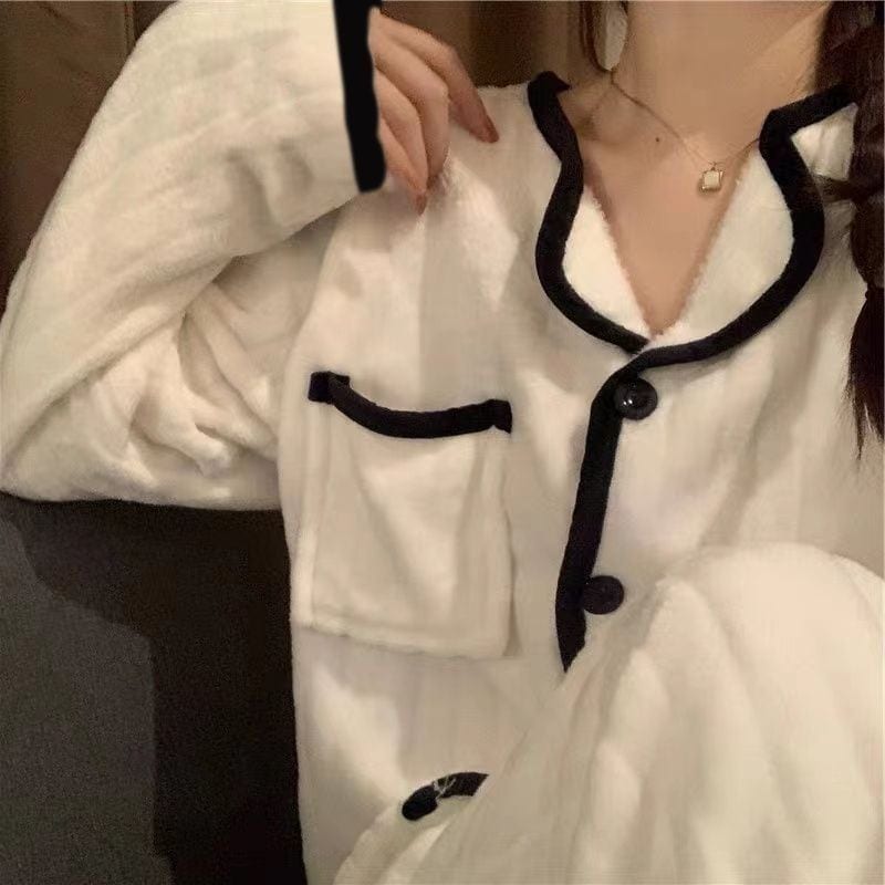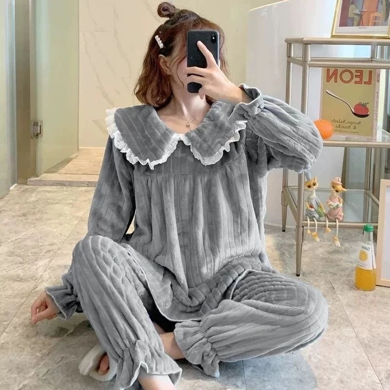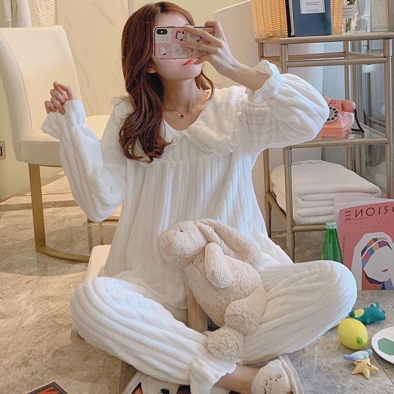 韓国insの新型サンゴのパジャマ女性秋冬はフランネル学生の家庭服セットを厚くして着ることができる2026流行