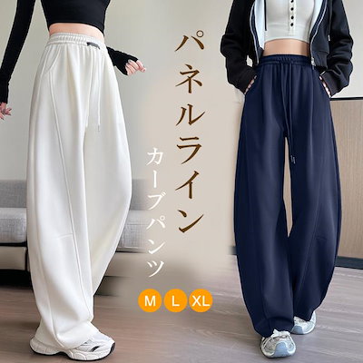 [2026 SNS話題沸騰]カーブパンツ ワイドパンツ スウェット ゆったり 脚長効果 パネルライン ルーズ スタイルアップ レディース パンツ ウエストゴム 体型カバー ジャージ コクーン
